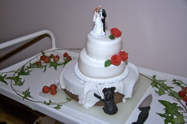 Min svigerinde og hendes mand lavede vores kage - der er dog ingen af dem der er noget i nærheden af konditor, men for os var den bare helt perfekt :-)