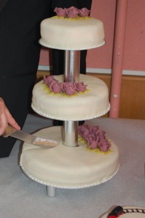 Havde altid drømt om en ubeskrivelig flot kage til mit bryllup, men fik den værste kage ever. Vi havde bestilt en 5 etages kage, men fik 5 grimme lagkager med choko kringler