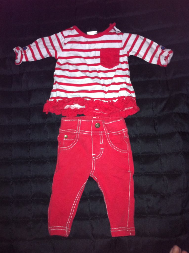 BabyBaby by KappAhl (fra Norge) sødt sæt i rød og hvid. // NSN(obs! buks er meget slim model)