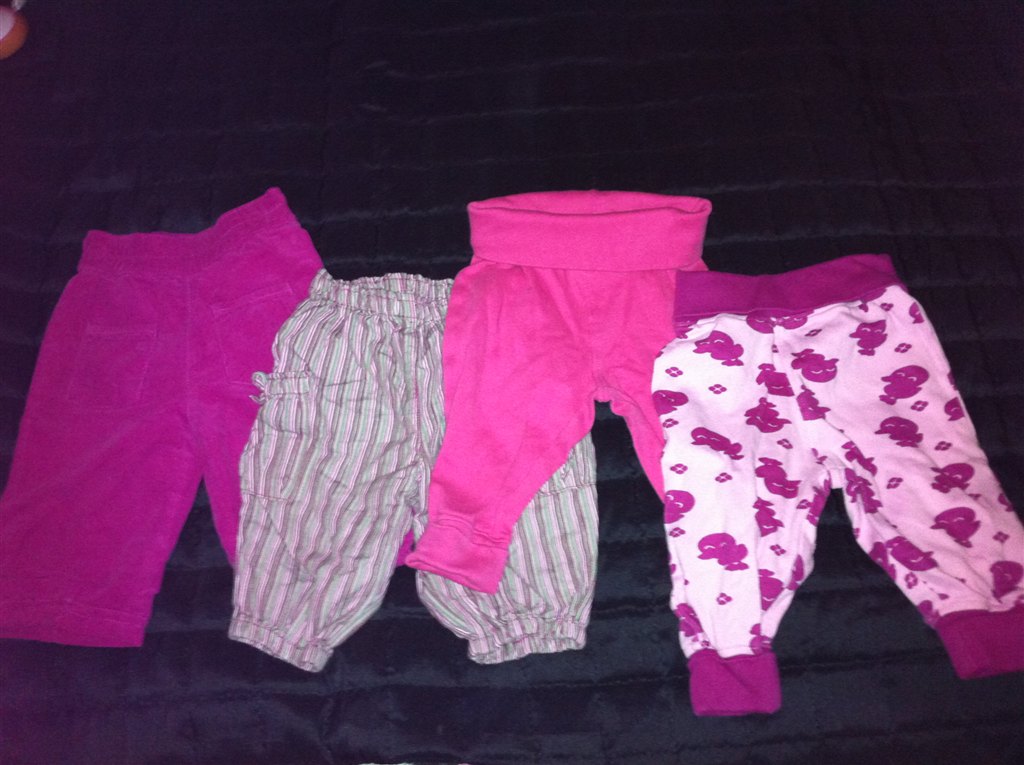 Friends bukser - (fra venstre mod højre)1 par pink fløjl // NY1 par hør i stribet // GMB1 par pink tulle bukser // GMB1 par lyserød m. motiv // NSN SOLGT !!