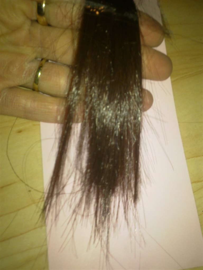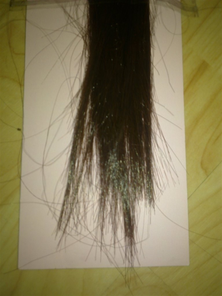 håret er ikke 100 % ægte, men tåler både krøl og glatte jern. Håret tåler op til 180 grader.