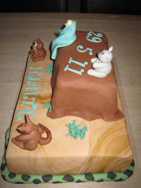 En sjov dåbskage til lille Hjalte. Ønsket lød på noget med en tasmansk djævel, Ayers Rock og en drengebaby.