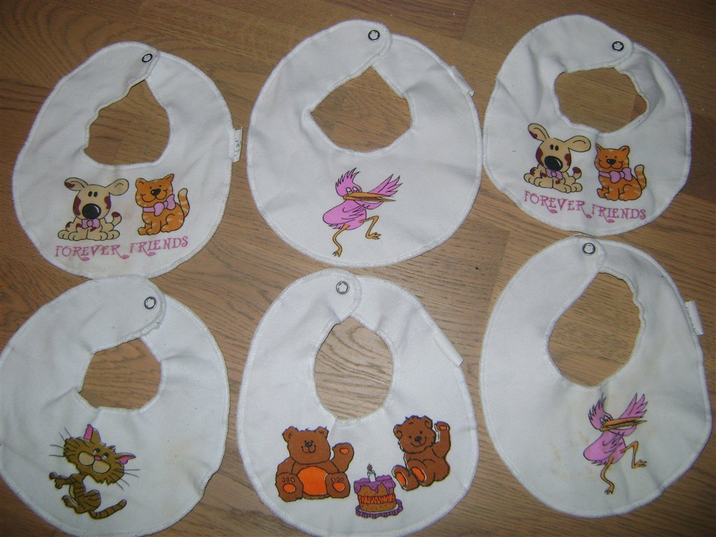 Topp skriver: ja søger en masse hagesmækker i pigefarver ( IKK lyserød) det skal være dem i stof - bare til savl