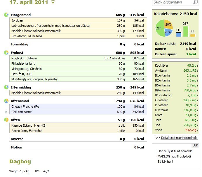 Det er sådan et fantastisk værktøj, jeg kan ikke anbefale det nok. Det fantastiske er, at så længe du holder dine kalorier, må du spise hvad der passer dig. man lærer self. hurtigt, at det ikke kan betale sig at spise en masse usundt, for så får man ikke meget mad