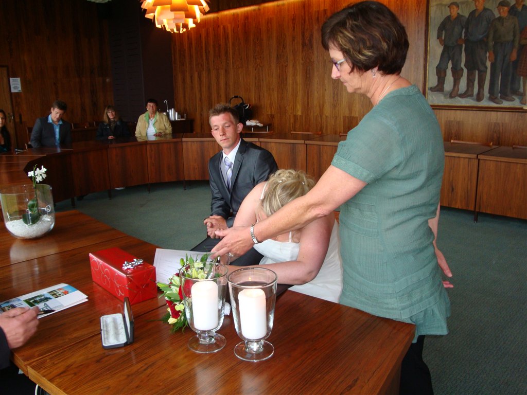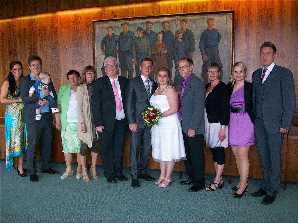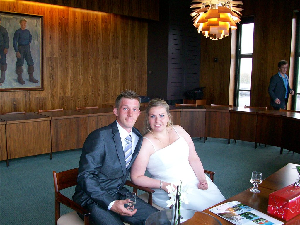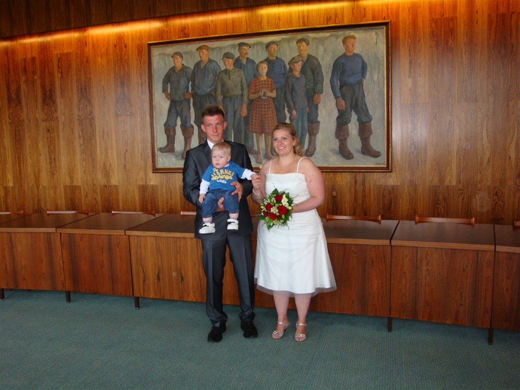 . I lørdags d 28 maj sagde min kæreste (nu mand) og jeg JA til hinanden på Ringkøbing Rådhus, den nærmeste familie var med. Jeg har ikke den store familie, hvor min mand har en kæmpe familie, for ikke at gøre forskel havde vi inviteret den nærmeste familie (forældre, søskene med ledsager og mormor). Vielsen forgik stille og roligt, og vi fik sagt JA til hinanden. Under vielsen slog vores søn (8 mdr. gammel) en kæmpe bøvs