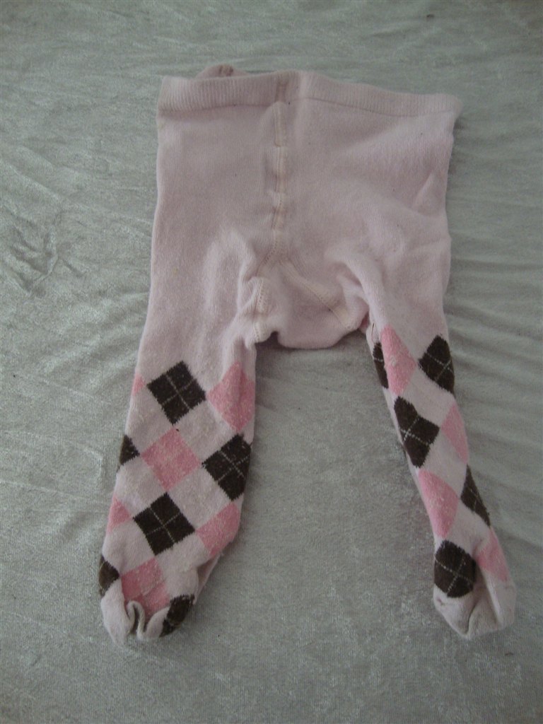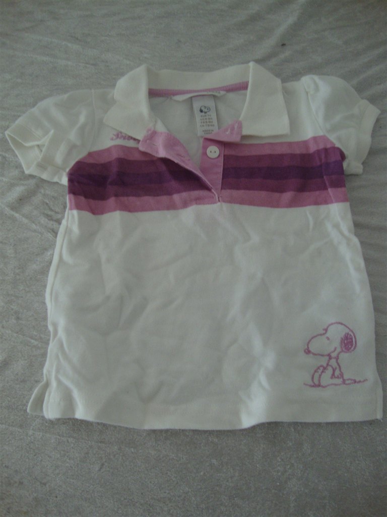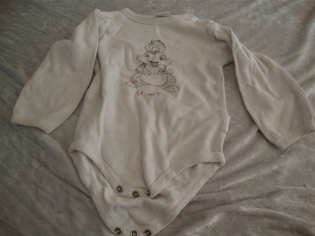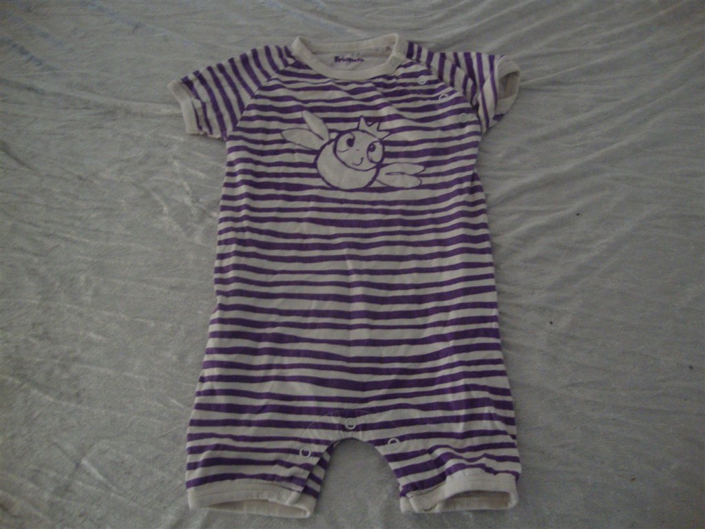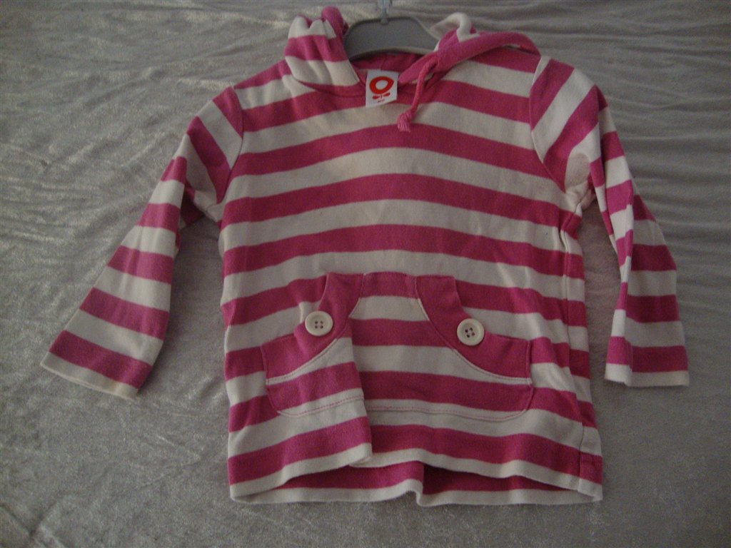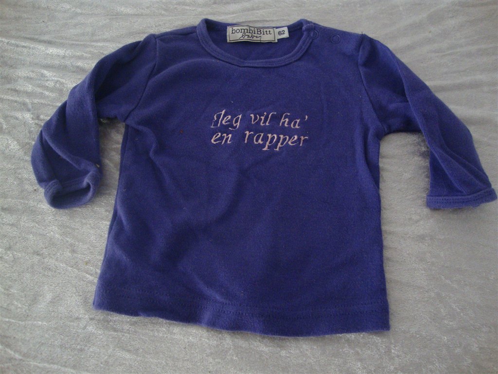 Jeg har fundet tøjet frem. Det skal lige siges at striktrøjen er lilla og creme og ikke hvid.