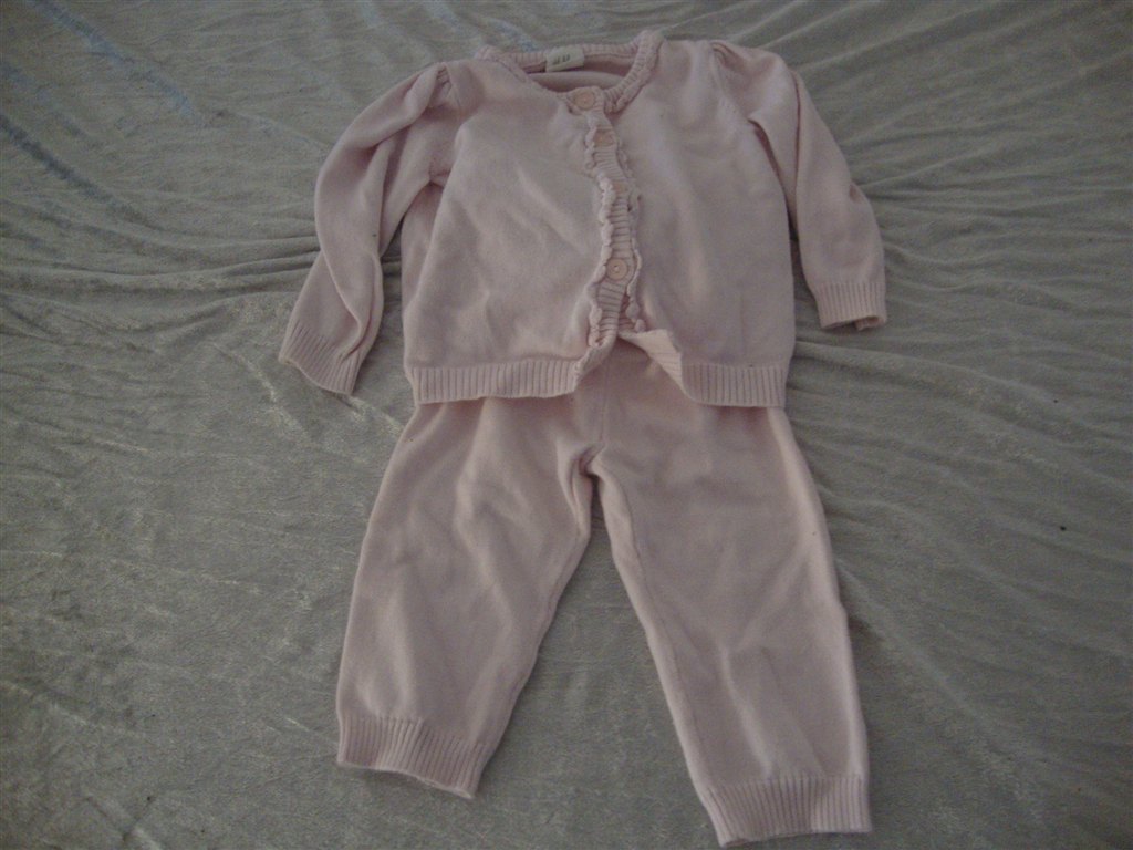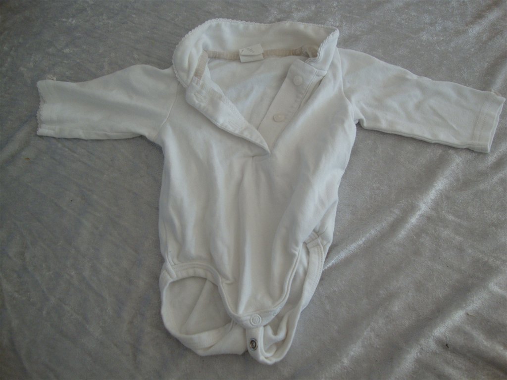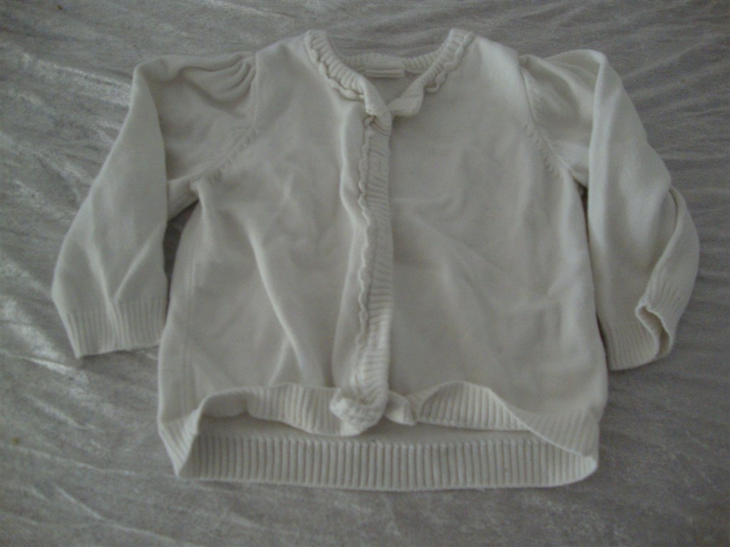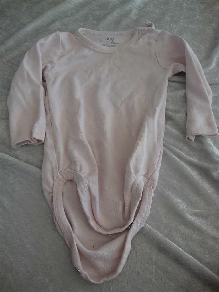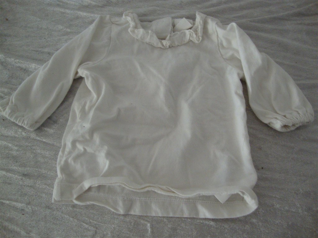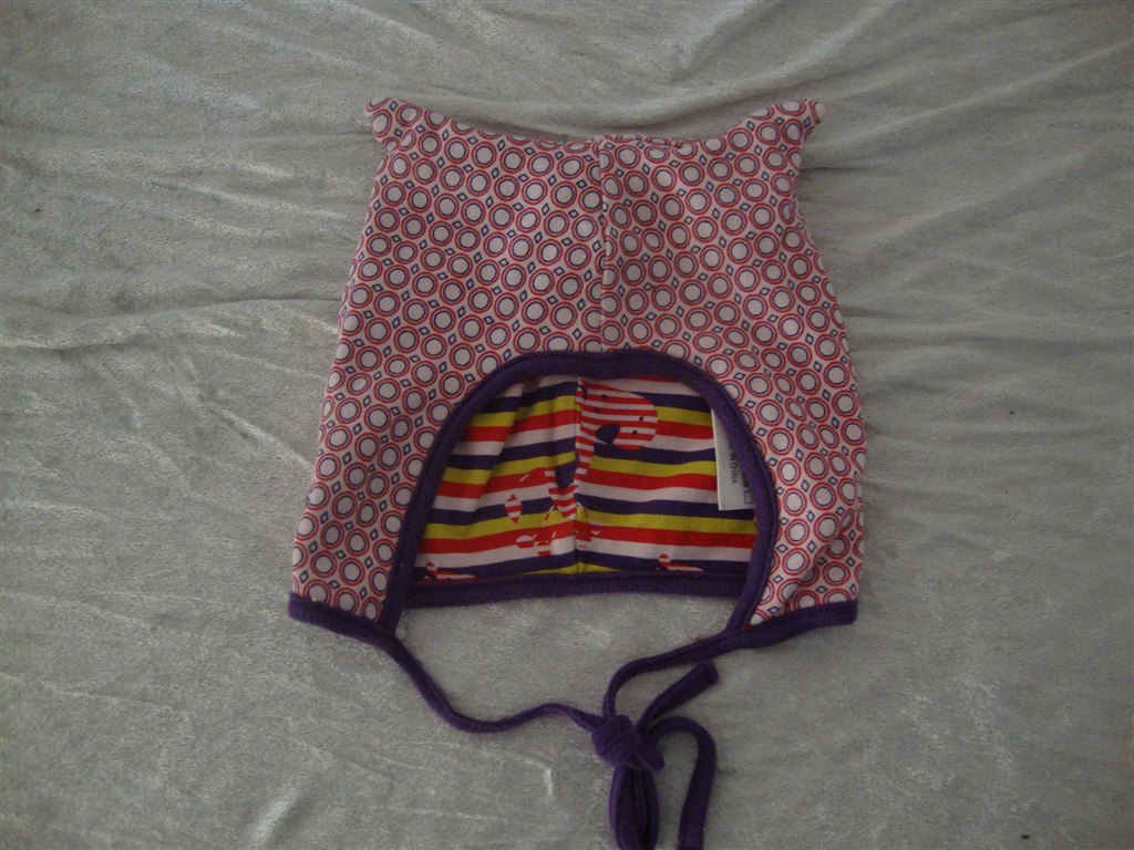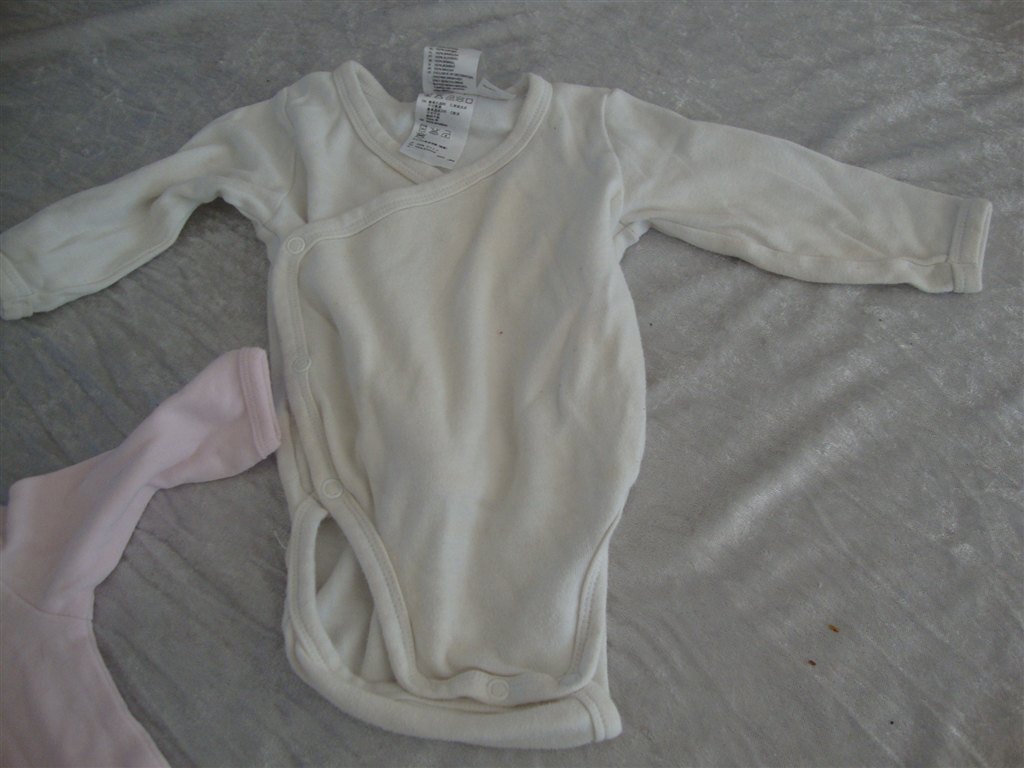 Jeg har fundet tøjet frem. Det skal lige siges at striktrøjen er lilla og creme og ikke hvid.
