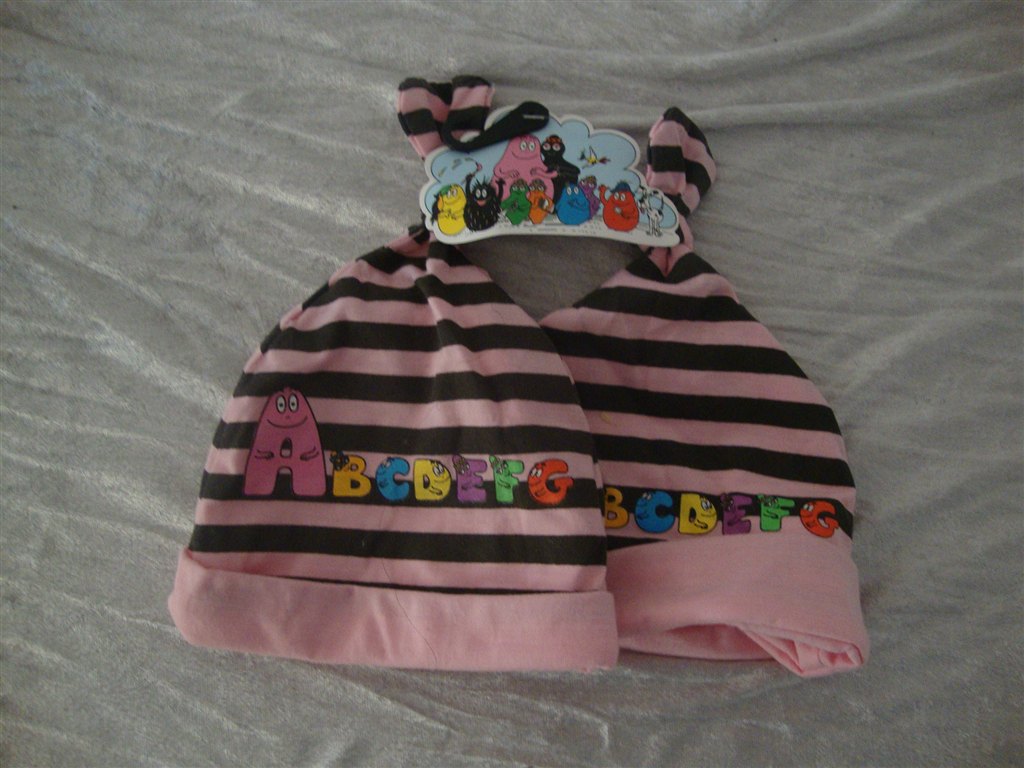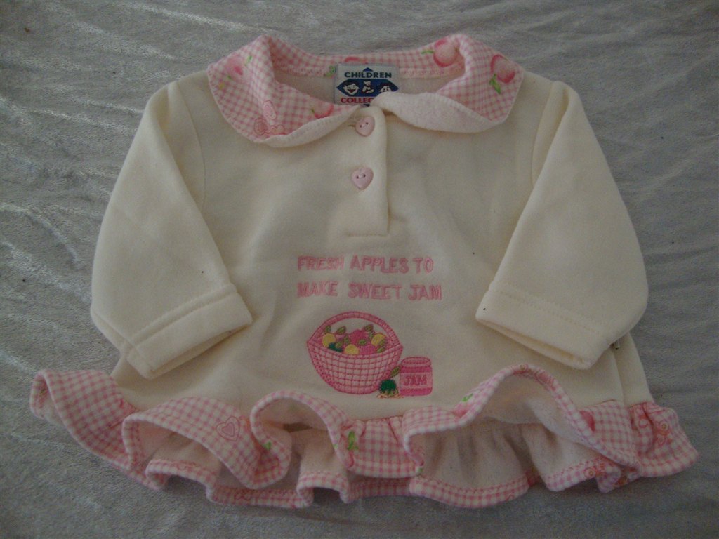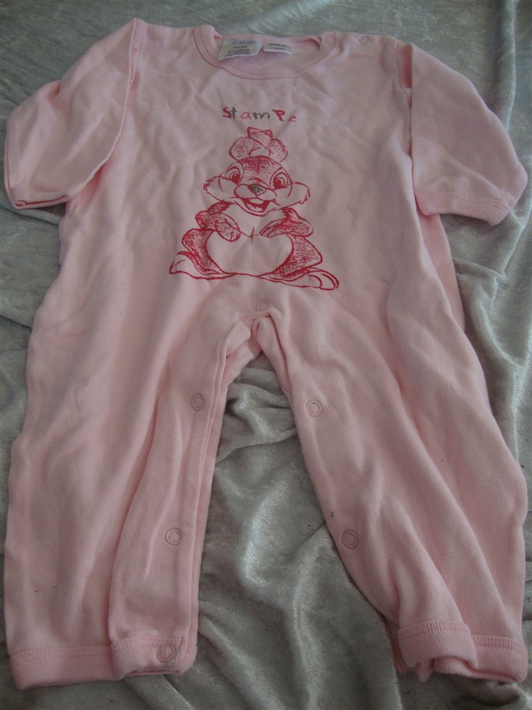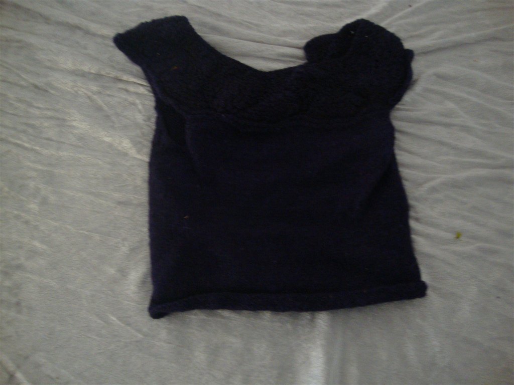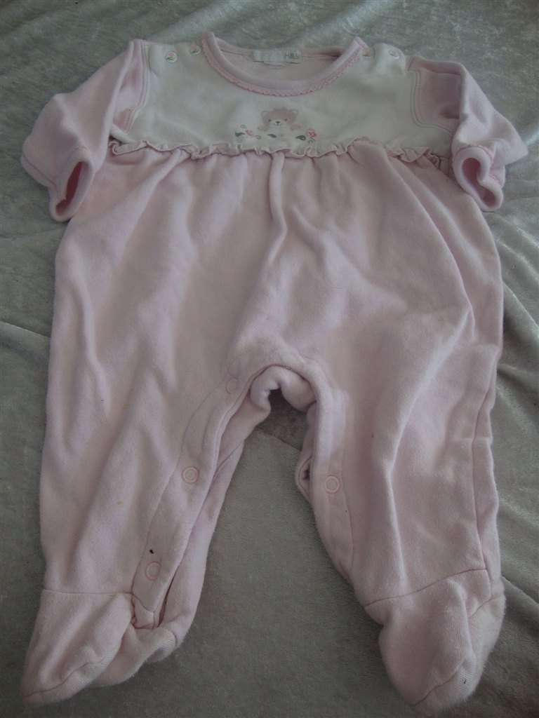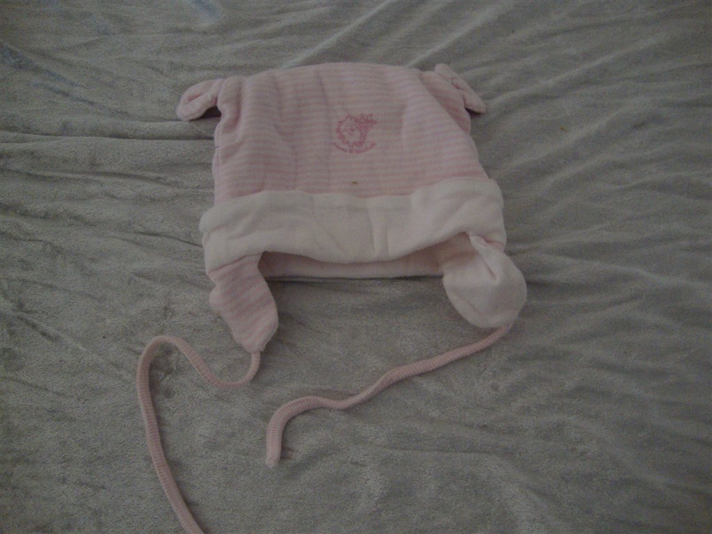 Jeg har fundet tøjet frem. Det skal lige siges at striktrøjen er lilla og creme og ikke hvid.
