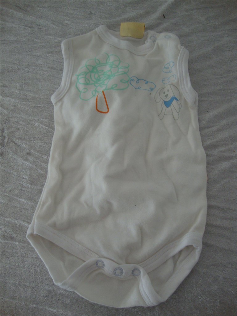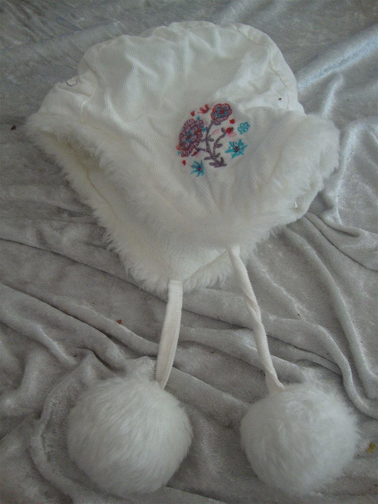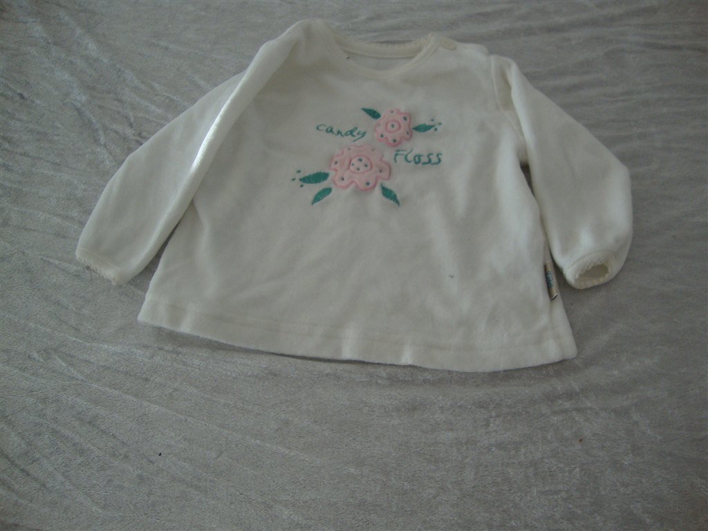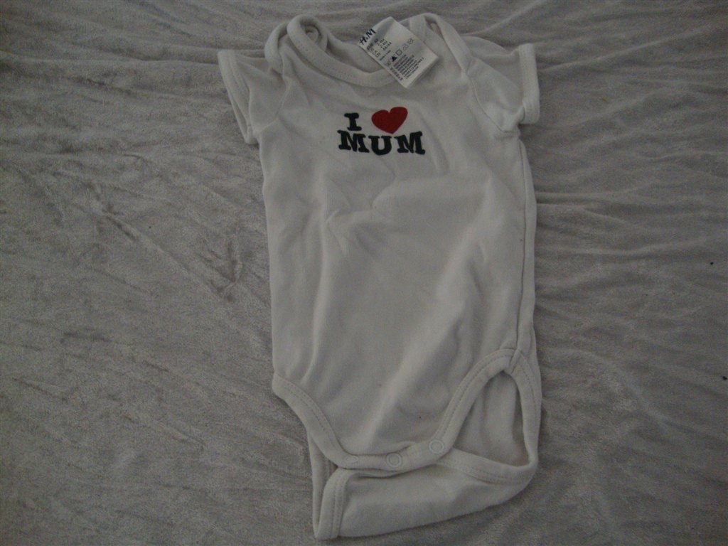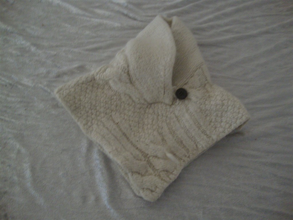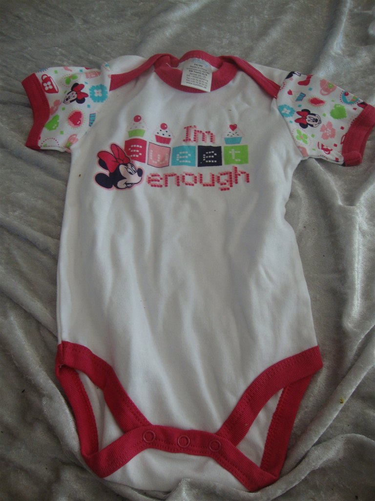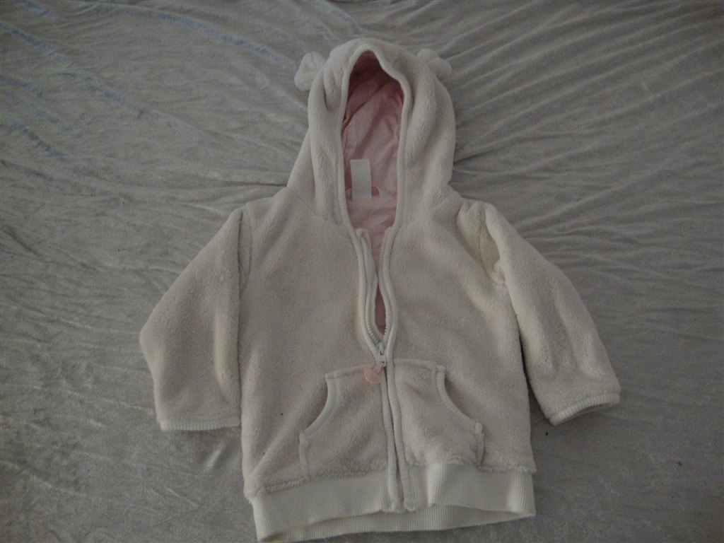 Jeg har fundet tøjet frem. Det skal lige siges at striktrøjen er lilla og creme og ikke hvid.