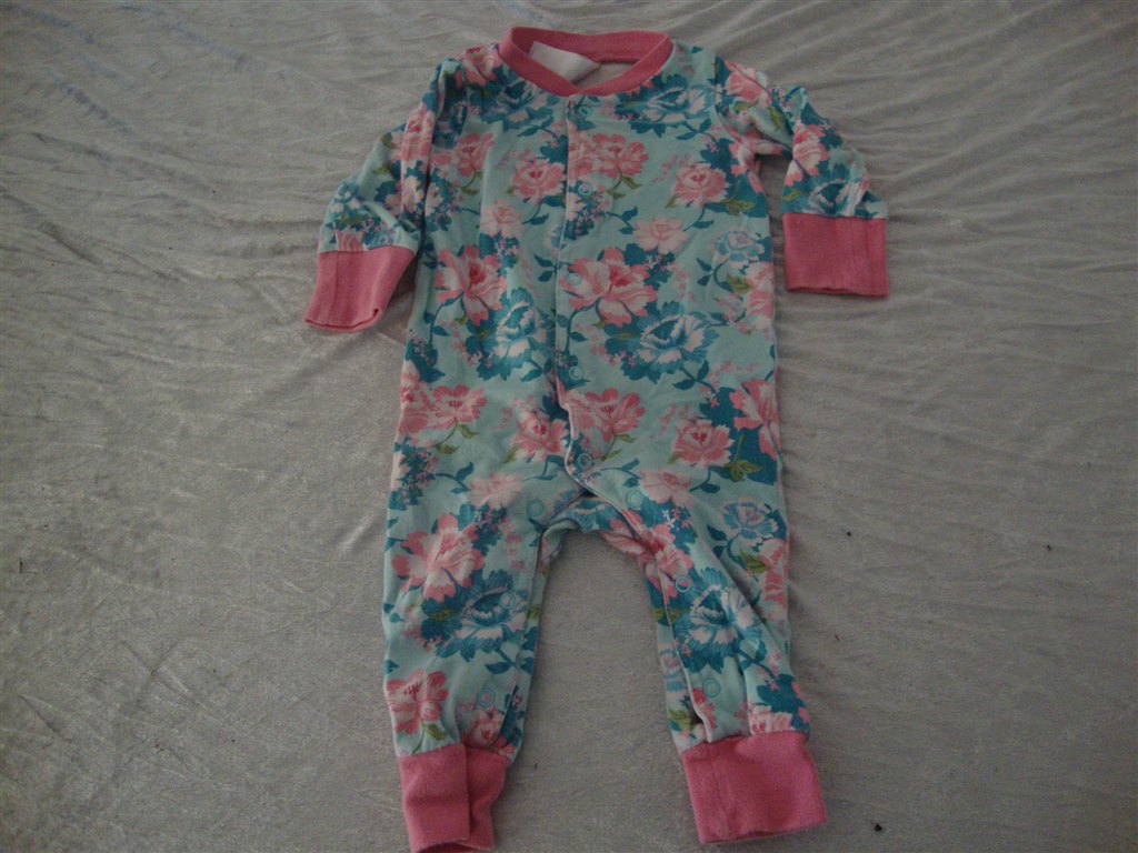 Heldragt med turkise/pinke blomster + heldragten nedunder