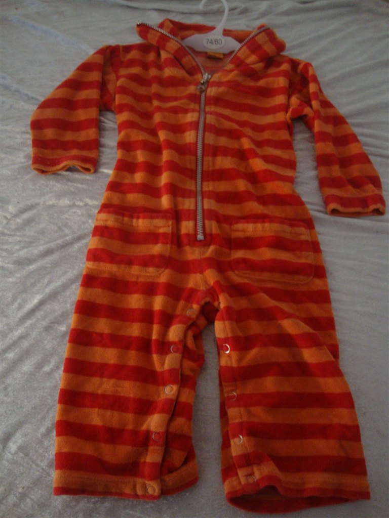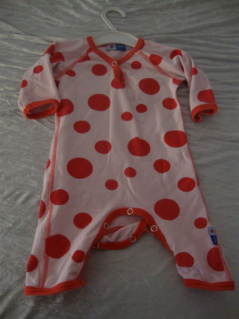 Heldragten med prikker er str 56.