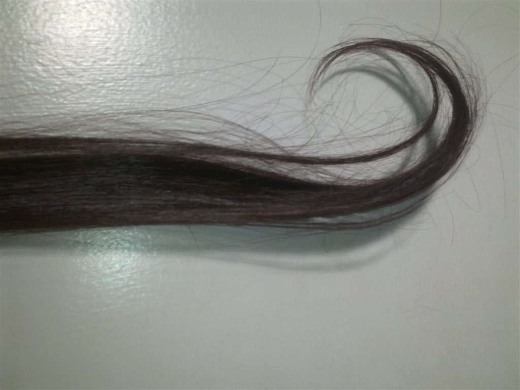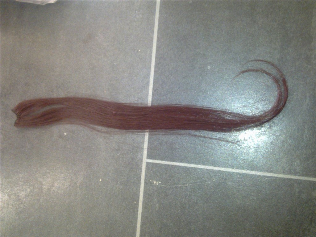 Håret er ALDRIG brugt... men pakket ud af pakken....