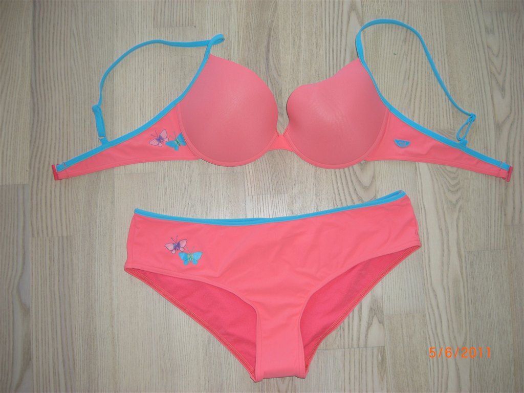 Trussen er en lille 44 (altså en 42 i min verden) og overdelen er en 80C. Der er indlæg i, som gir et lille push-up.