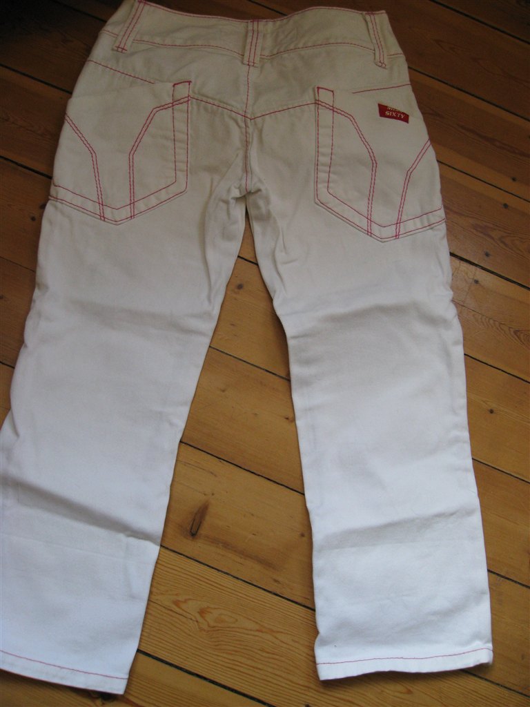 1. Miss Sixty hvide jeans med pink syninger. Str. 28. Korte i benene (kan fx. bruges som knickers med opsmøg).