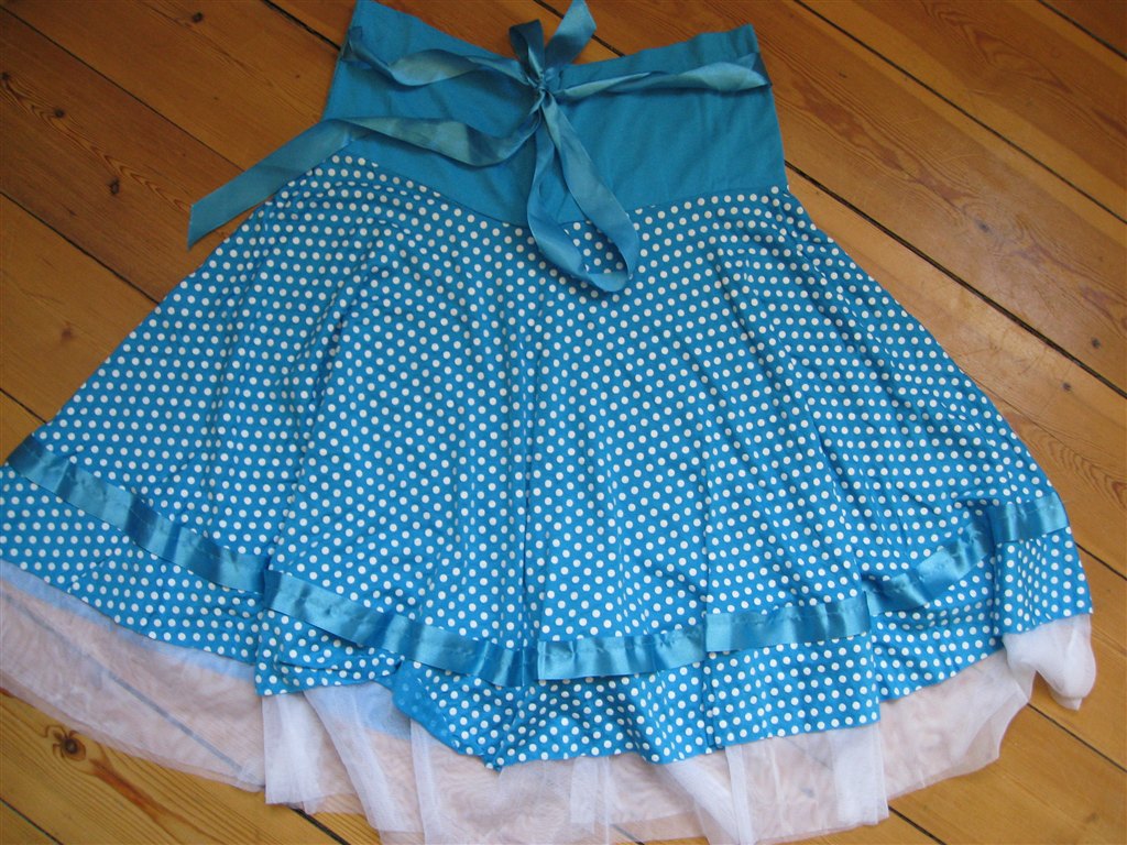 9. Turkis sommernederdel med prikker. Har aldrig været brugt. Der er ikke str. i. Passer en medium