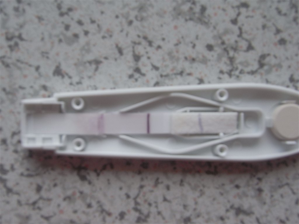Testen viser en meget svag streg, som nærmest er gennemsigtig og hverken rød eller lilla, men den er der!