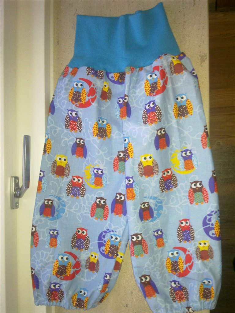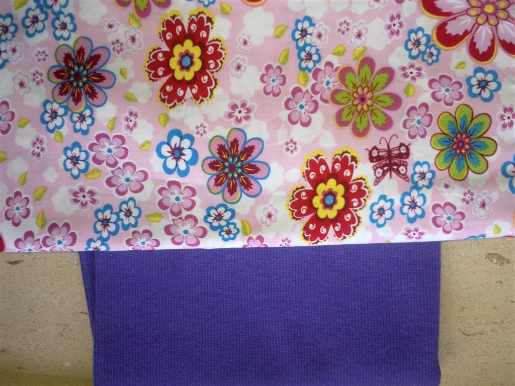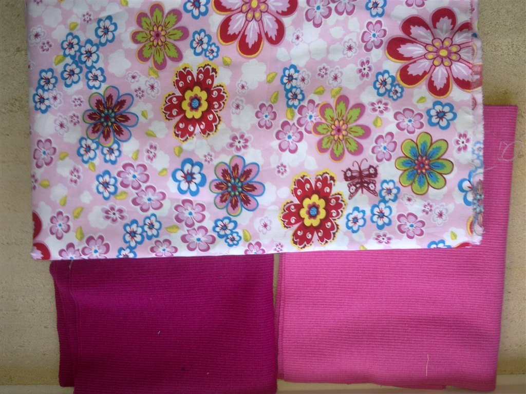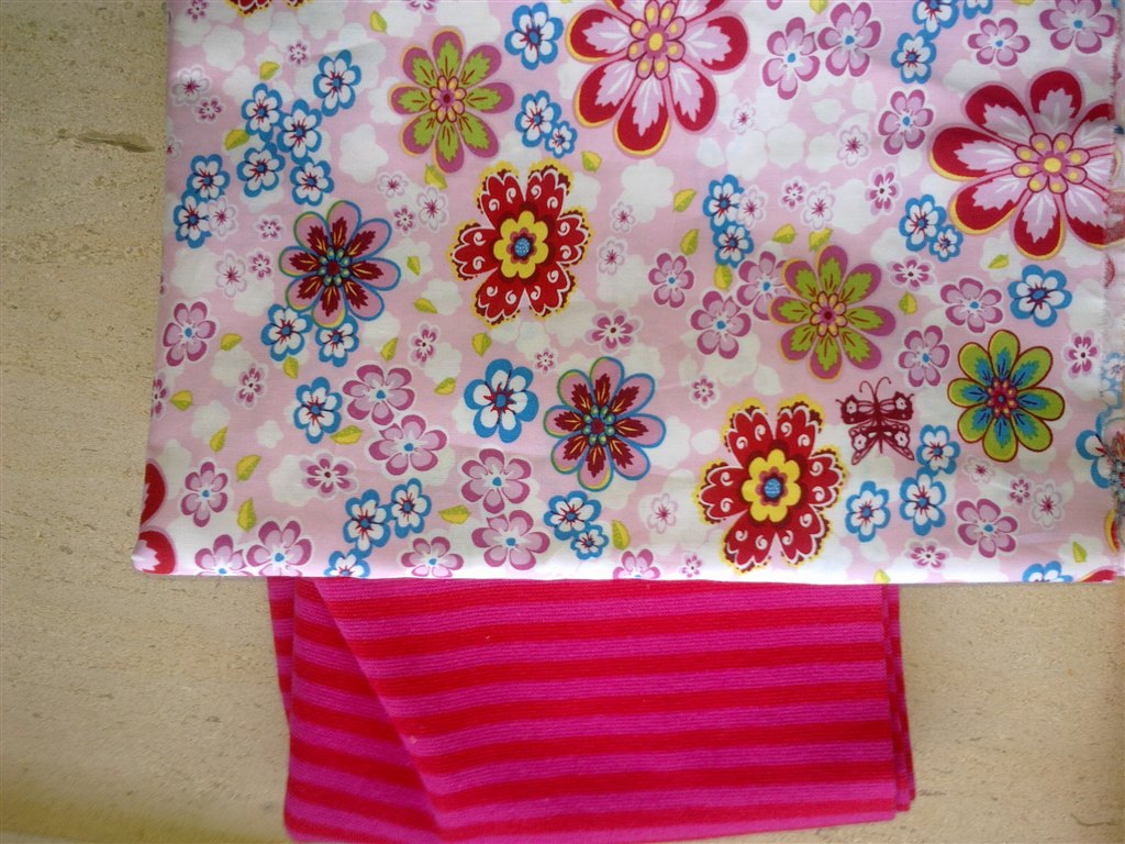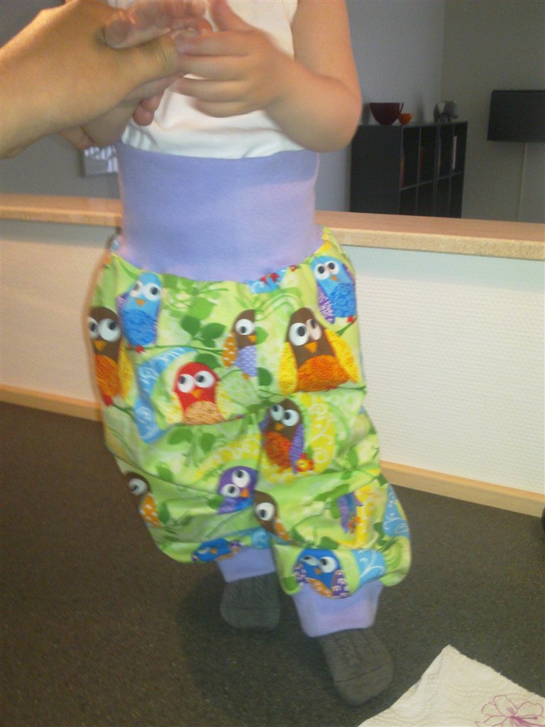 Det ene er ca str 92 (pigen er 48 cm om livet og 21 rundt om benet over knaeet). Modellen maa gerne vaere den med lilla hvaler. Men har du mon noget stribet rib der vil passe til?