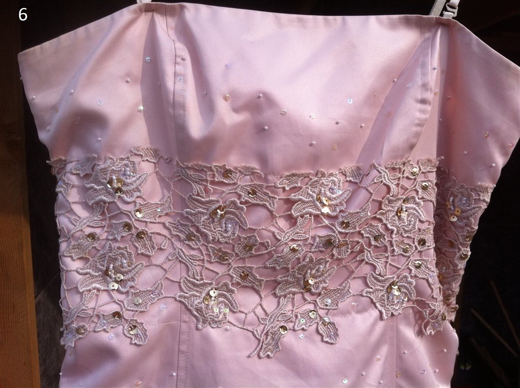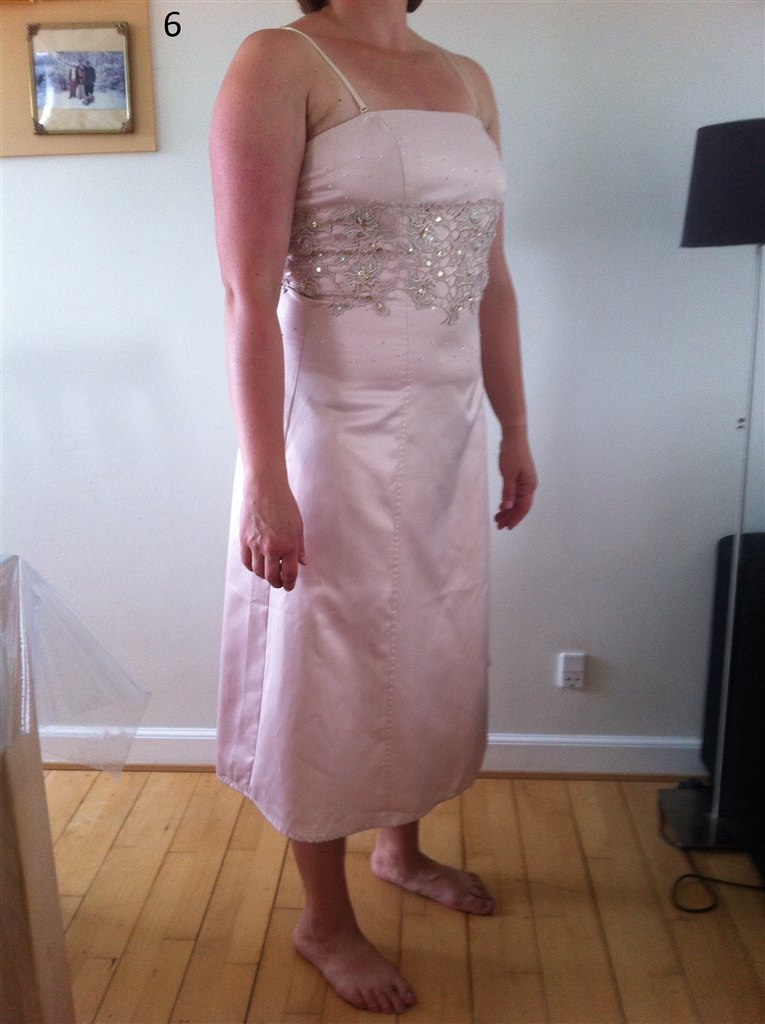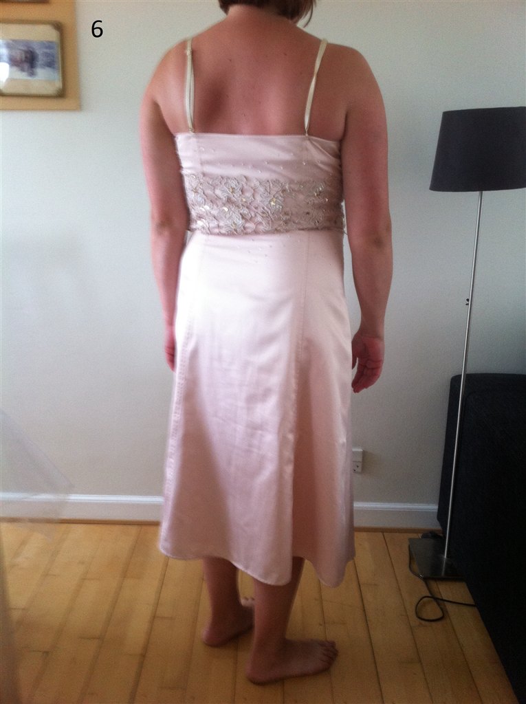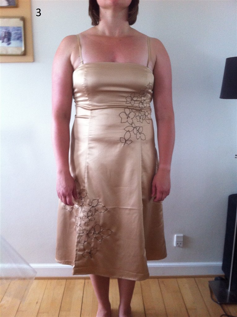 Kjole nummer 1: Lilly kjole (2010-model), brugt 1 gang - str. 42. Nypris 1.800 kr. og sjal medfølger - PRIS 1.000 kr.