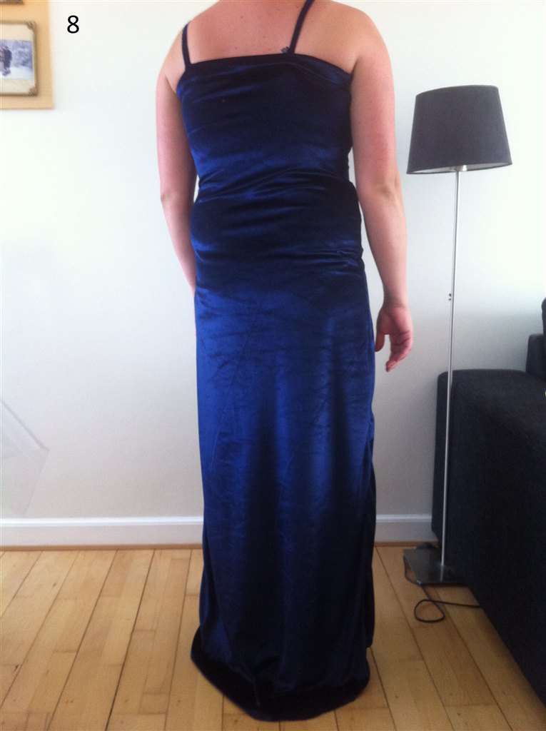 Kjole nummer 8: Blå velour kjole - eget design, nok str. m/l - PRIS BYD