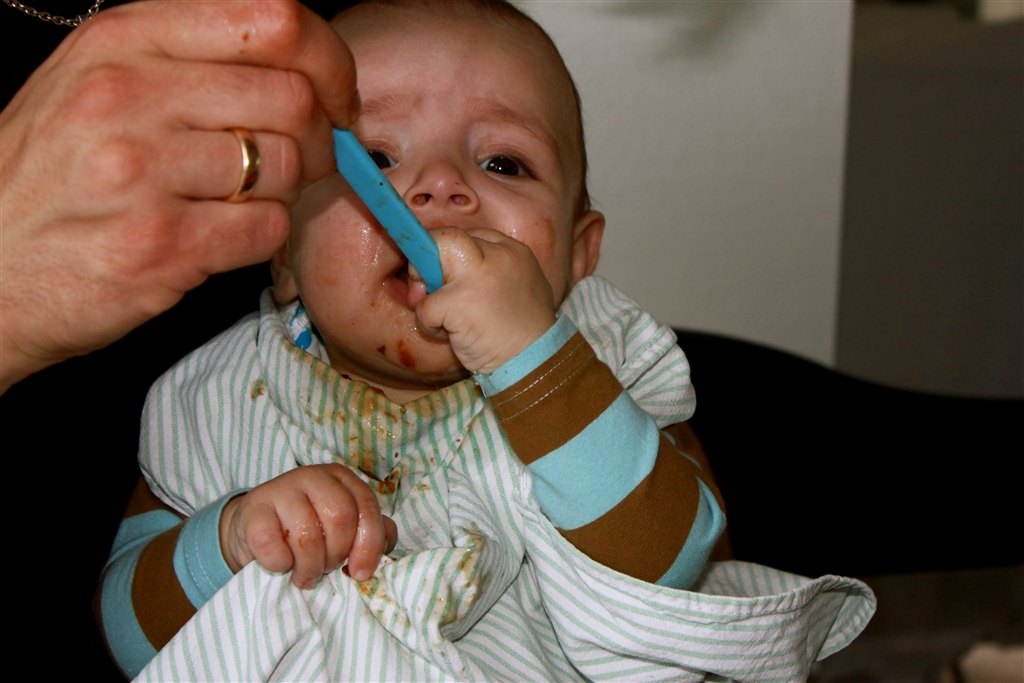 Men det er da underligt at han sådan er begyndt at spise ude. Men hellere at han blir stor og mæt - og hvor er det hyggeligt at Martin også kan være en del af det. Kan godt forstå Jens gerne vil være med. Hvad med grød - er I begyndt?