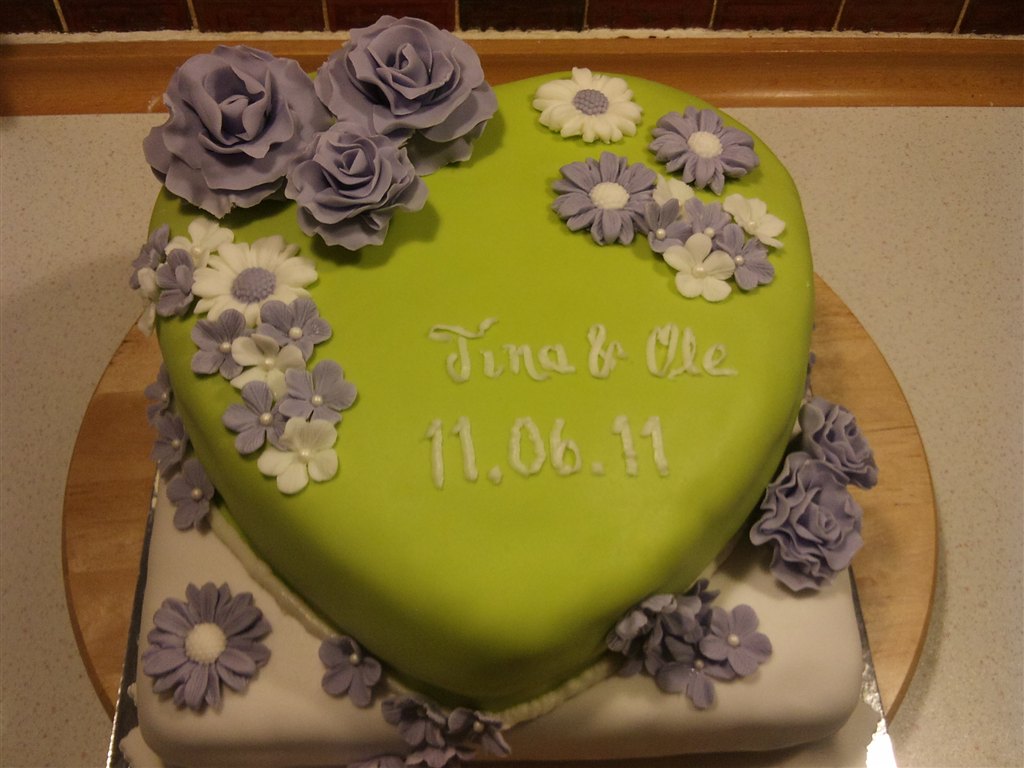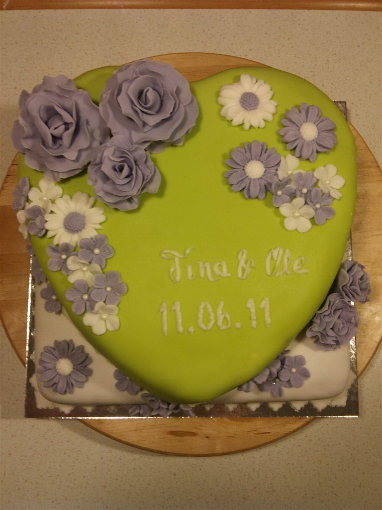 Så blev det til endnu en bryllupskage, og de havde set en kage, jeg havde lavet før, og de ville gerne have en i sammen stil, så det blev til denne her...