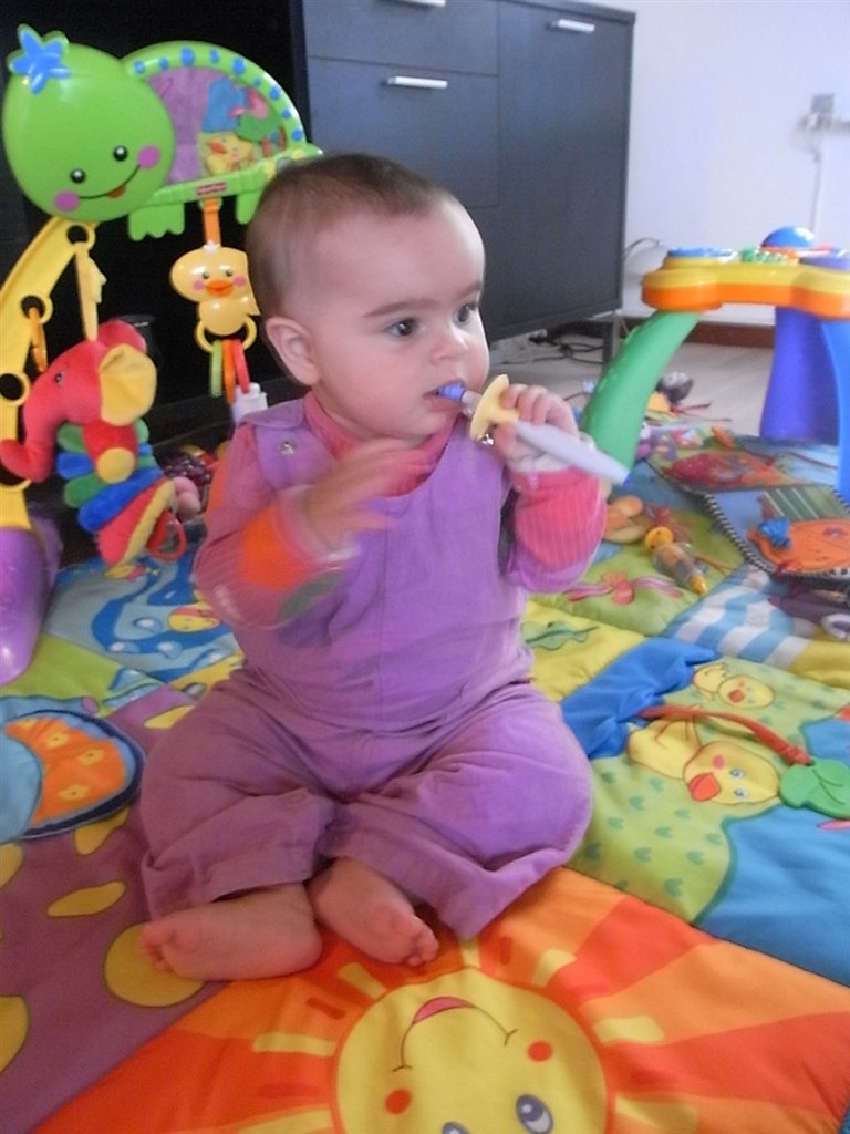 piadas skriver: Hvis tænderne klør, så køb denne: http://nuk.de/#path=produkte/zahnpflege/productdetail&p=10.256.205<y=m&lid=21&m=1 Ida er vild med den og elsker at gnaske og gumle på den. Den koster kr. 60,- i Superbrugsen. Jeg har også set den i Kvickly, så mon ikke alle coop-butikker har den. Jeg har læst om en, der har fået den i Bilka, så den skulle være til at støve op.
