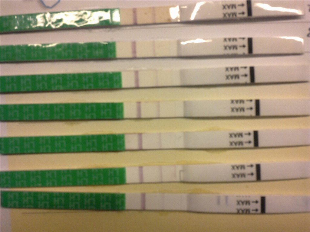 mine kontrol streger er viiiiiirkelig tydelige, og mine test streger er meget svage, nogen gange bare lidt tydeligere..... jeg ligger lige et billede ind fra denne måned.....