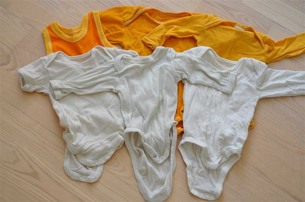 Selv de små bodyer (3 str str 62) kan bruges i str 68-74, så de holder længe!).