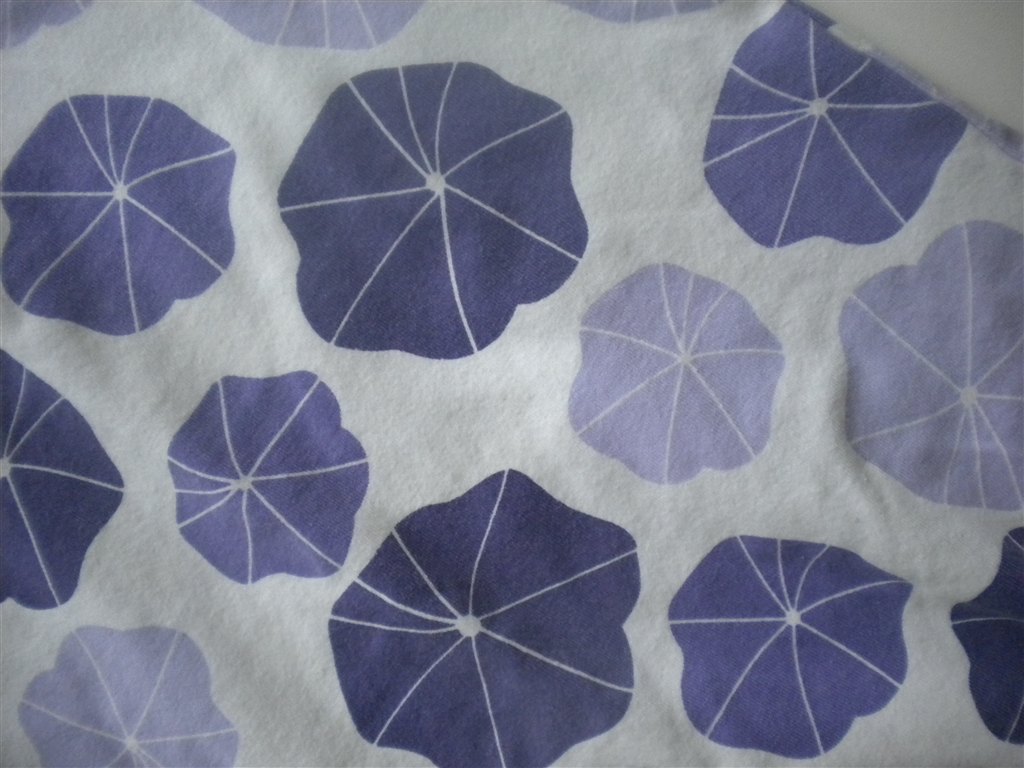 Melton heldragt, lilla blomster motiv med grøn kant. 50 kr