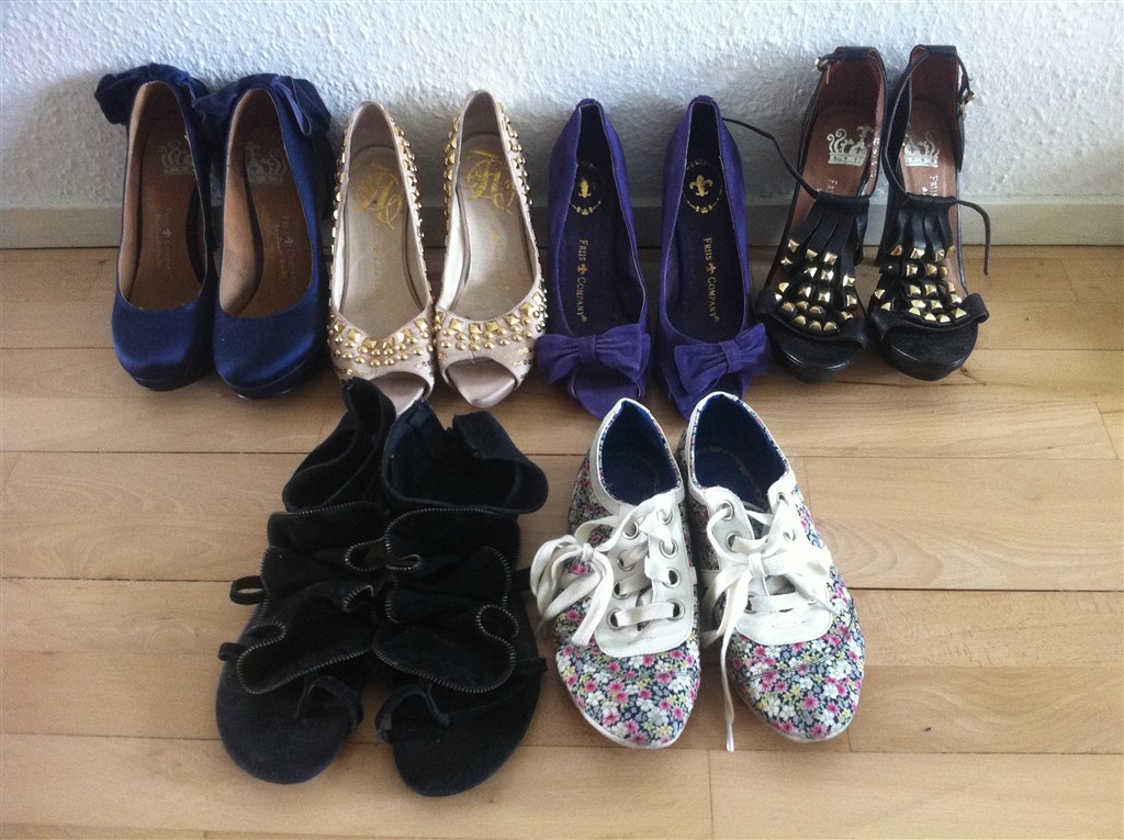 Du kan få armbånd og blå stiletter samlet til 300 kr.. Og hvis de brune ikke bliver solgt kan du få alle 3 ting samlet til 400 kr..