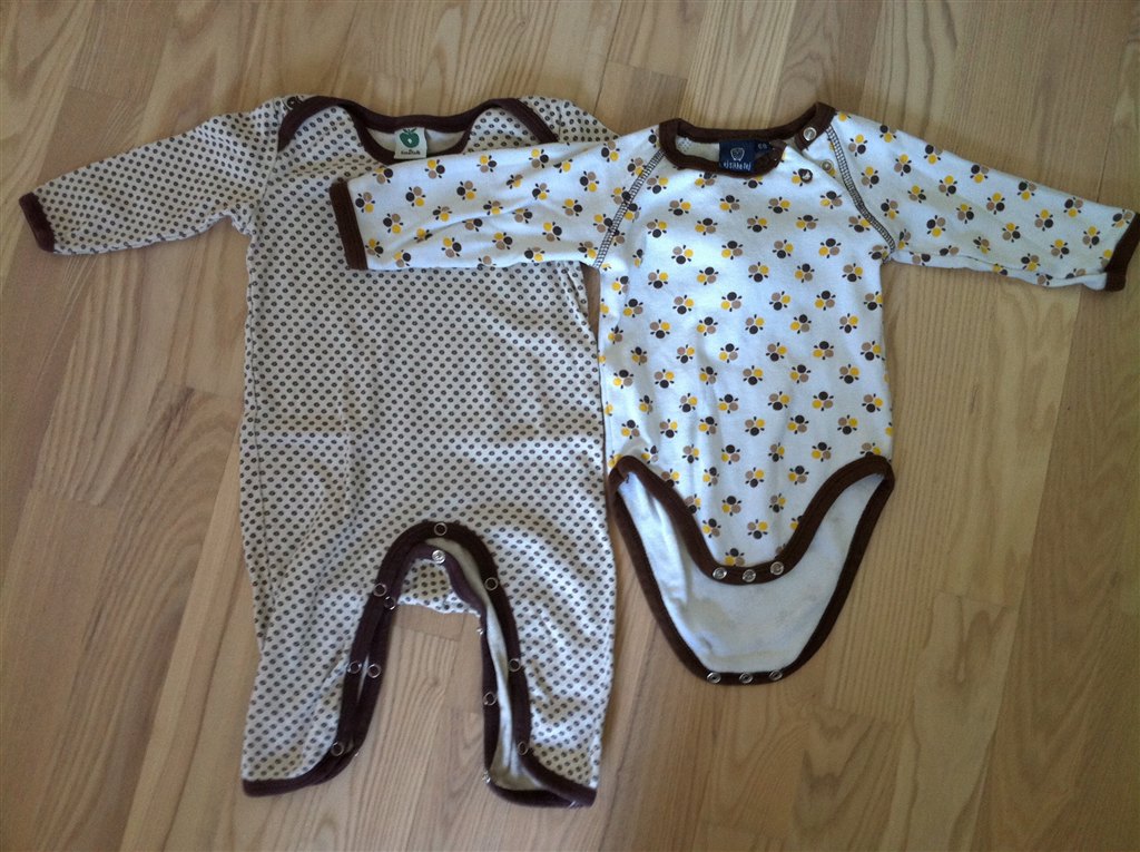 Blå Hollys, hvid/brun småfolk og Ej Sikke Lej body = str. 68