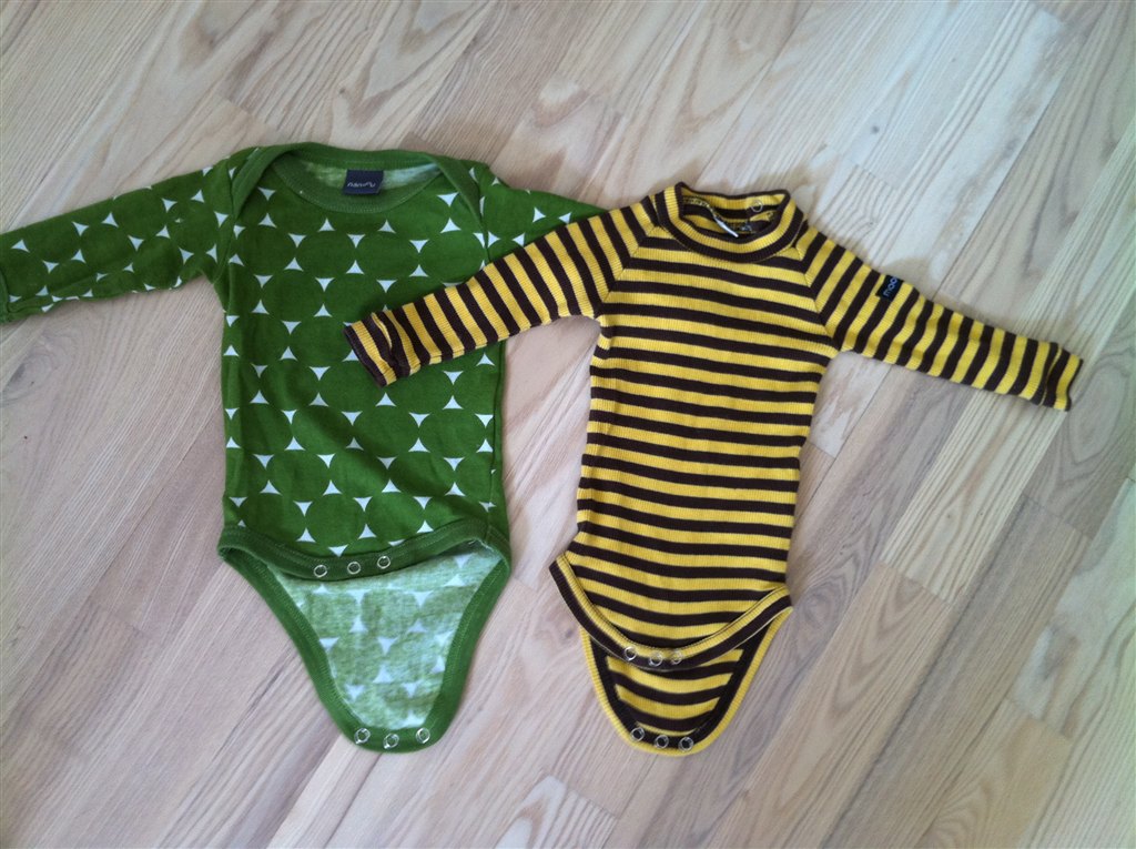 Nanoo og Moonkids bodyer i efterårsfarver, str. 62. God men brugte. Lidt vaskefnuller på Moonkids-bodyen (den humlebi-stribede).