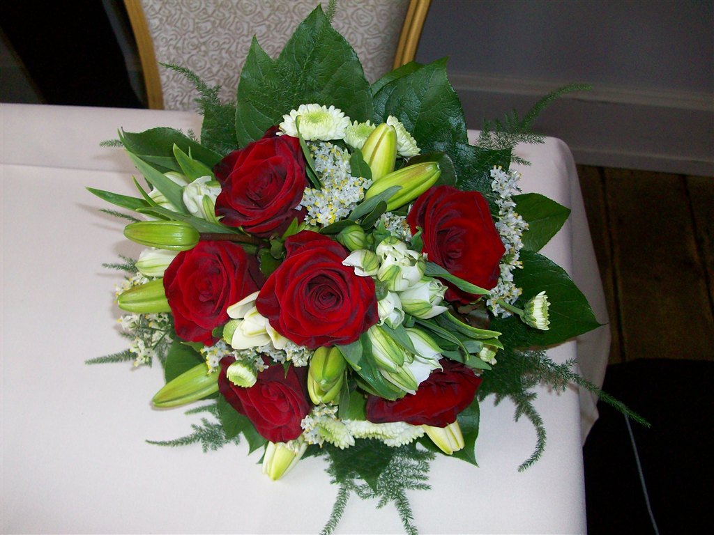 Den består at liljer, roser, ærteblomster, havre og de små lilla blomster kan jeg ikke liiige huske hvad hedder.