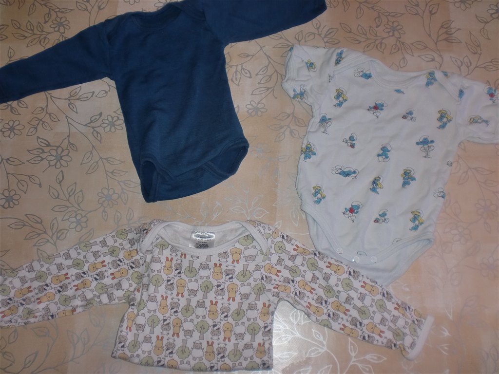Body med smølfer, str. 70 = 20 kr.