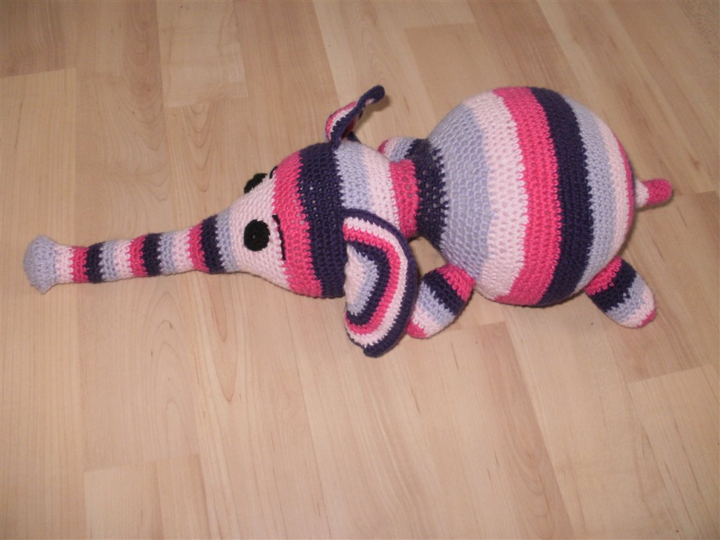 Hæklet elefant sælges. Der kommer flere efterhånden som jeg får lavet nogle. De kan også bestilles. Pris 225 kr