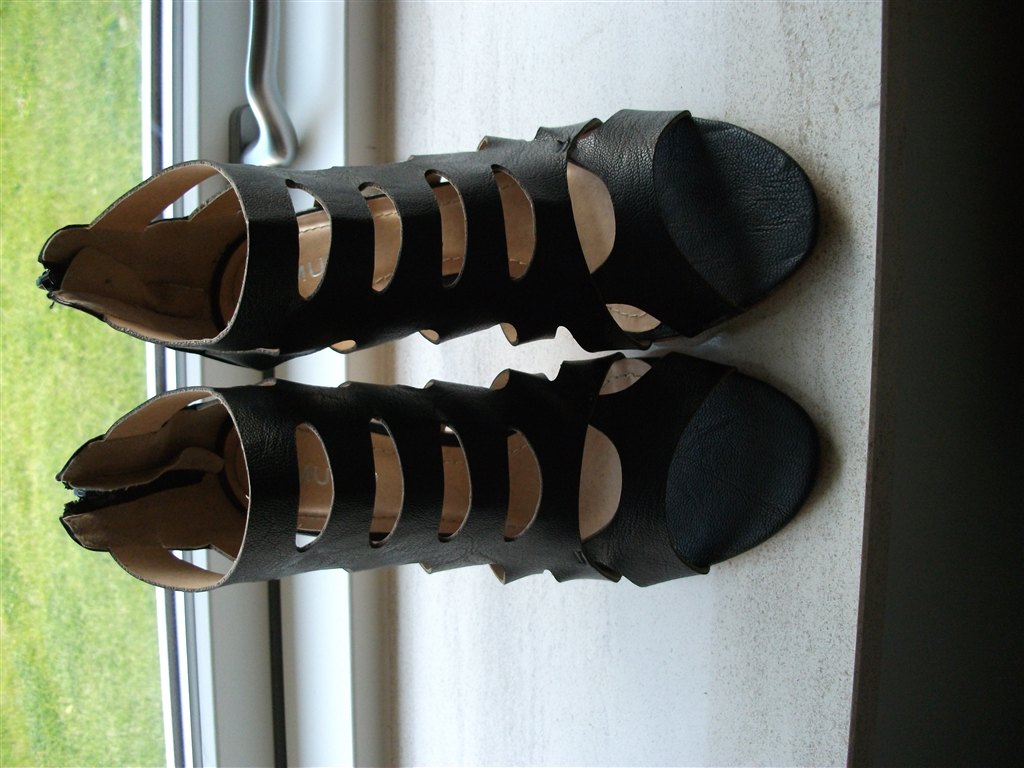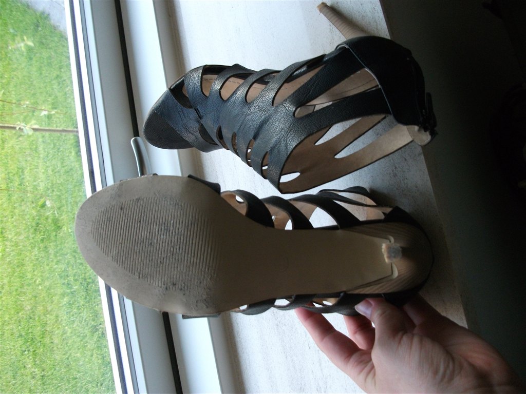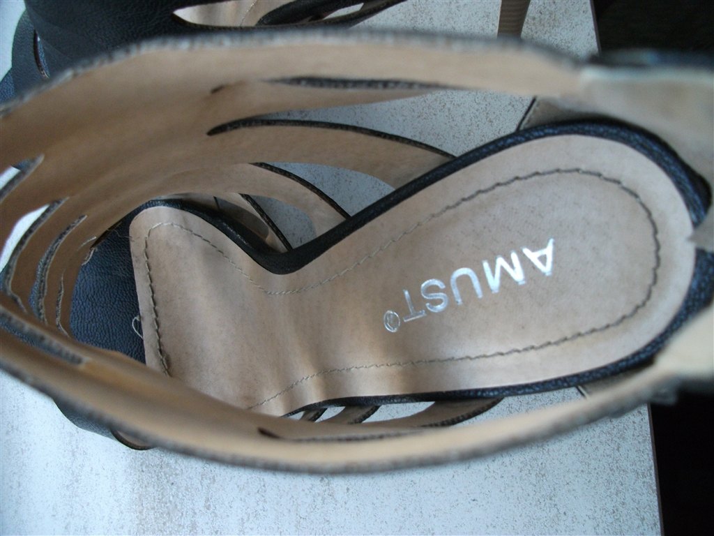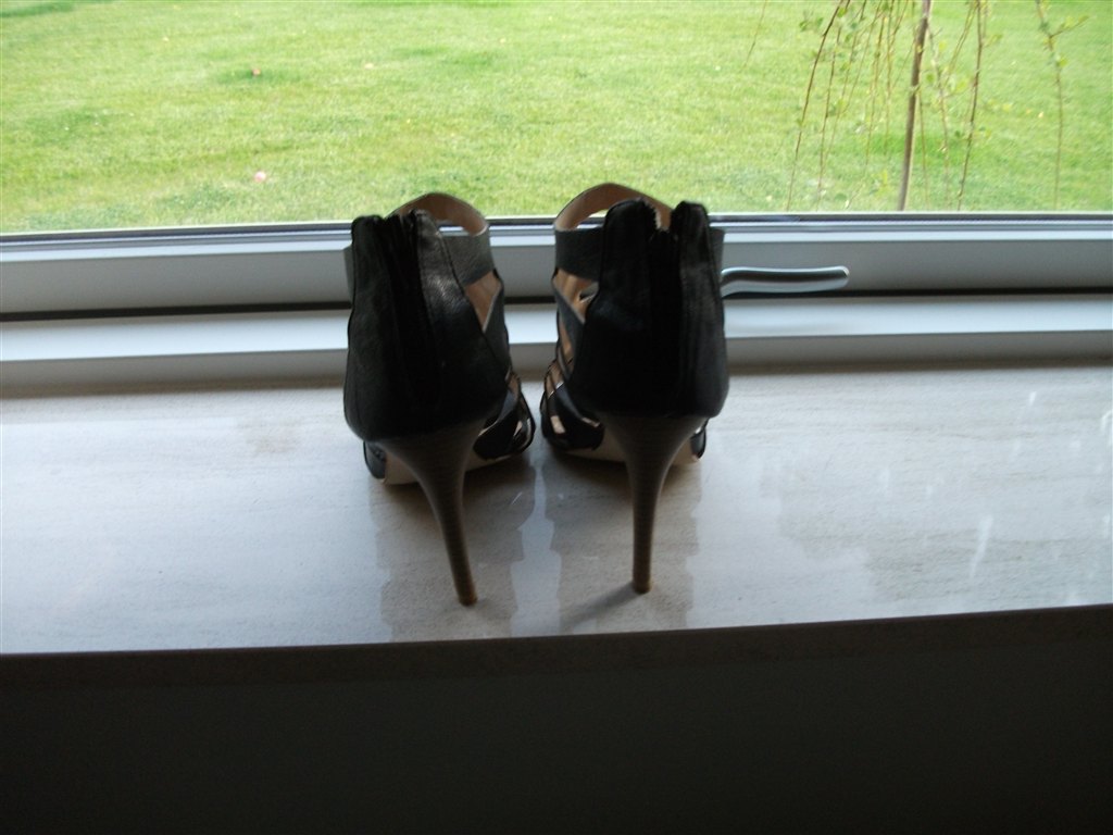 Den første: Amust lækre stiletter str. 38. Brugt 2 gange, ingen slid. Sort.