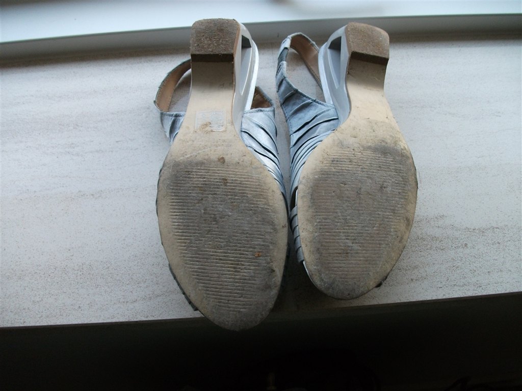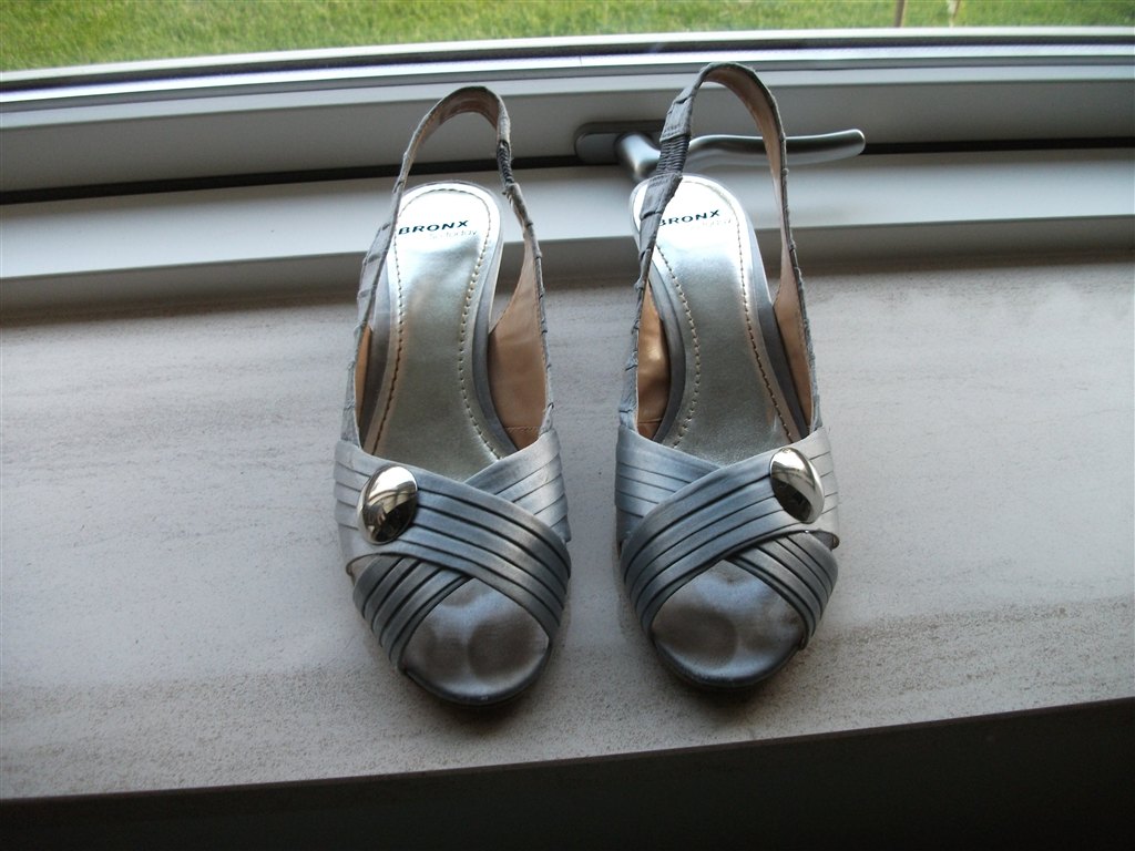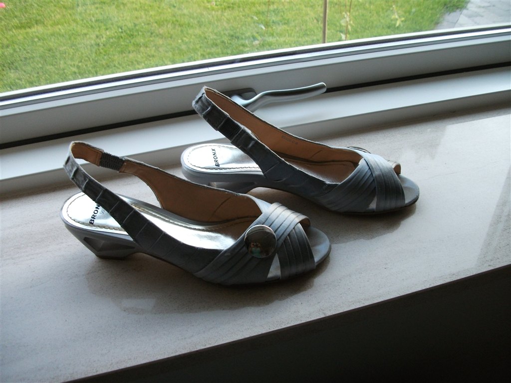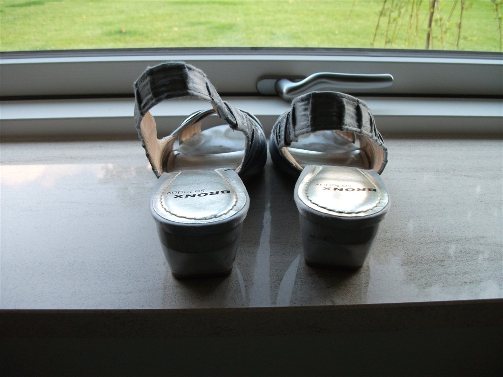 Den anden: Lækre sommersandaler fra Bronx str. 38. Brugt ca 5 gange, ikke det store slid. Blålig/sølv.