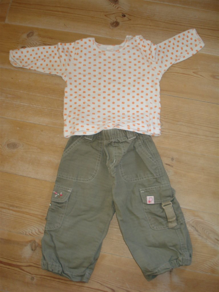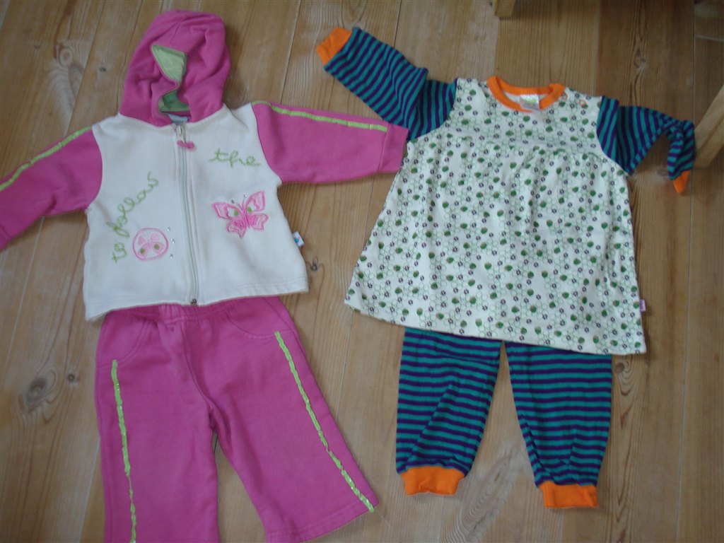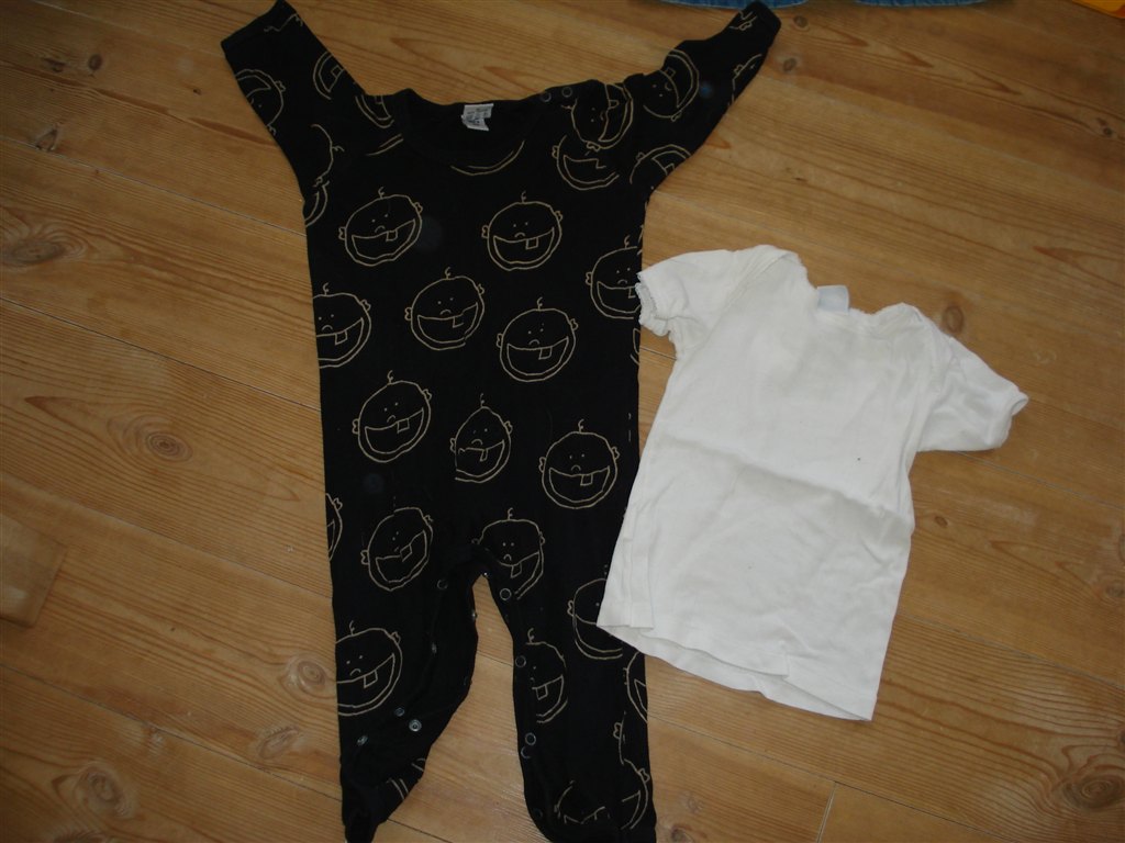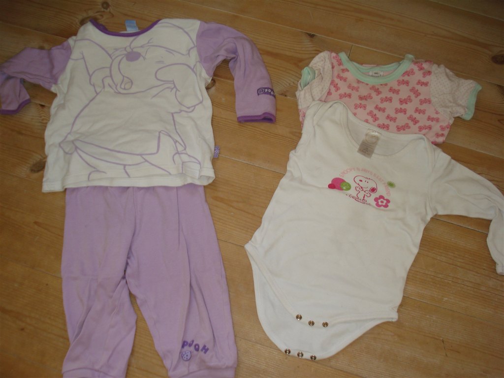 Str. 80 - blå mønstret bukser på billede 1 og nattøj med peter plys på billede 2.