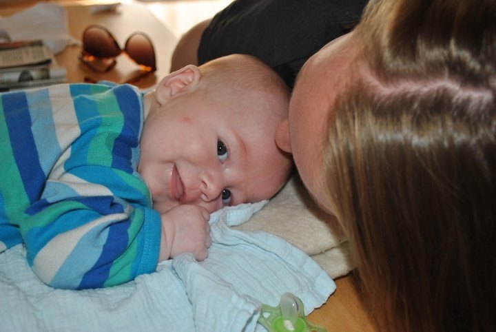 Derudover går det bare rigtig godt hos os. Han er begyndt at grine med lyd, og det er jo bare det sødste jeg i mit liv har hørt. Det sker ikke så ofte, og det er kun farmand der kan få ham til det, men vi lapper det i os når det sker. Han triller også af og til fra mave til ryg nu. Den anden vej nægter han!