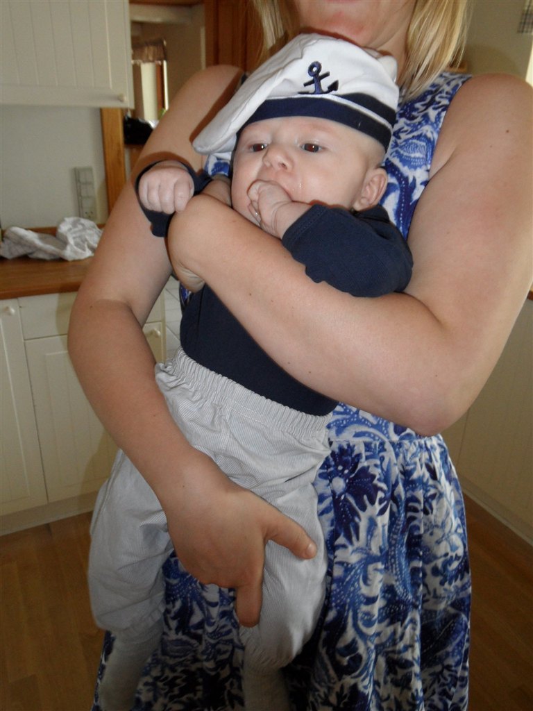 Han tog det som en rigtig mand! Hehe, ej han græd slet ikke og var meget dygtig. Vi havde en super dejlig dag. Jeg lægger lidt blandede billeder af ham ind i denne tråd, har ikke lige nogen af ham i dåbskjolen, men et par stykker af ham fra dagen, hvor han har den fine sømandshue på!