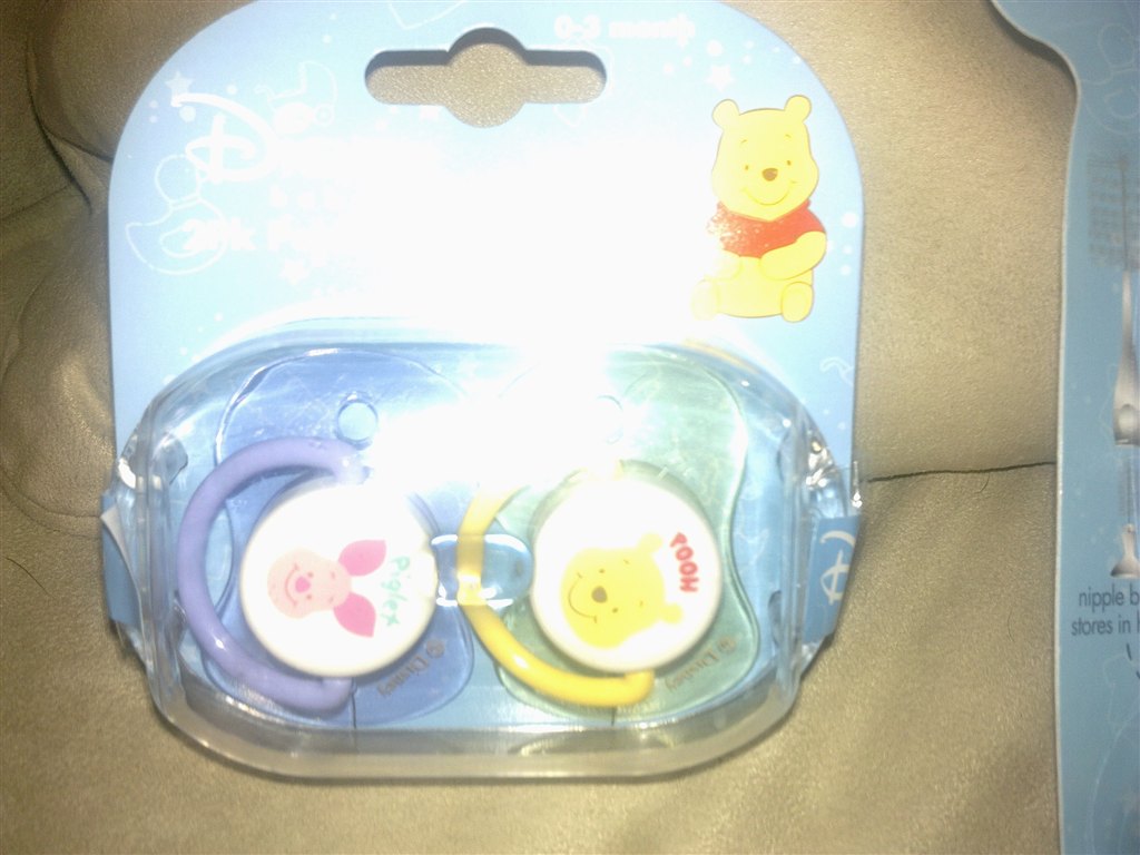 2 disney sutter, en gul med peter plys og en lilla med grisling, 0-3 mdr nypris 39,95 priside 15.-