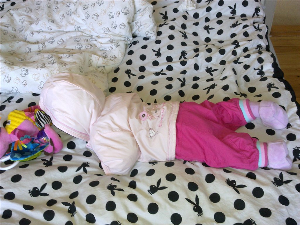 heldragt/natdragt str.12m men meget lille i str. min datter var 5 mdr da hun havde den på. kun brugt den ene dag billederne er taget, lækkert blødt stof. priside 40.-