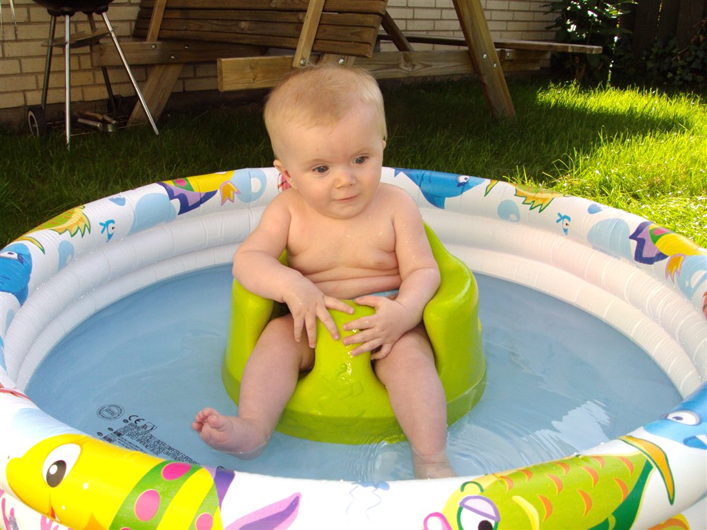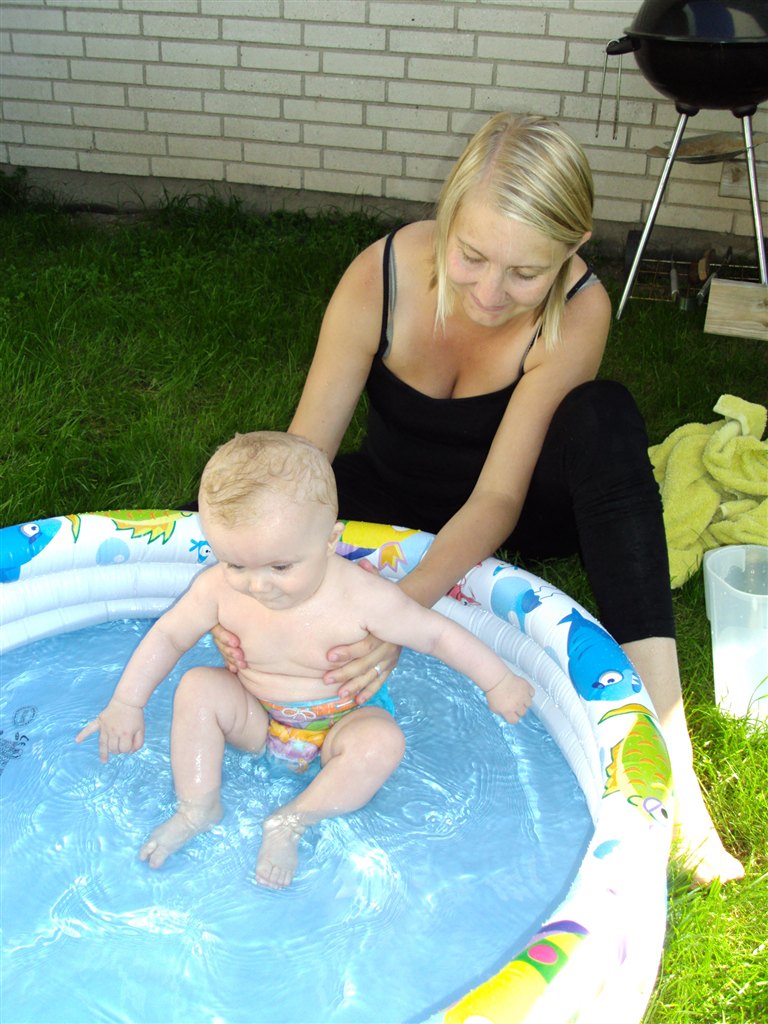 Her har vi også nydt dagen udenfor, dog ikke i vand. Ved ikke helt om han bliver for afkølet når han kun er 3 mdr min Noah???? Altså det derens med at styre sin kropstemp??