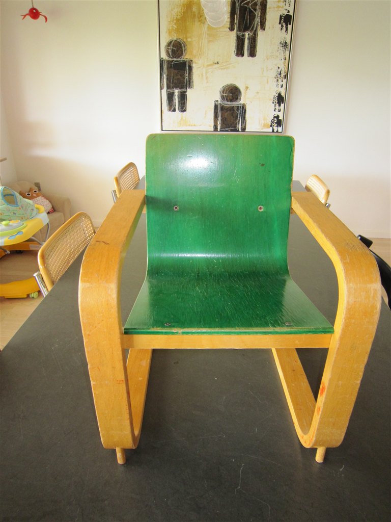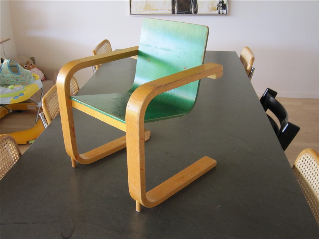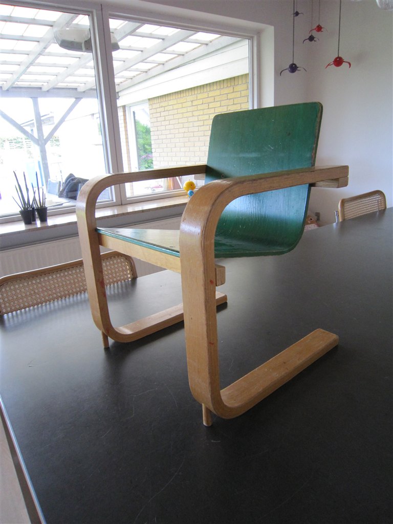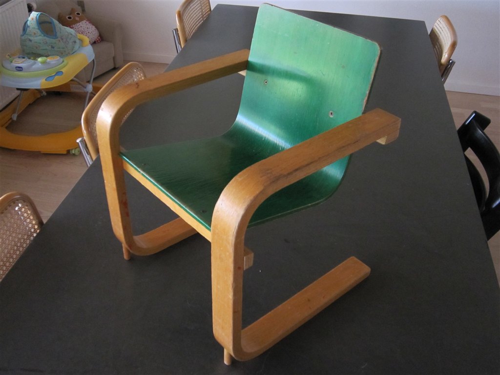 Flot retro børnestol fra 70'erne i grøn. Pris 450 kr - inkl porto - eller 400 kr hvis du henter selv