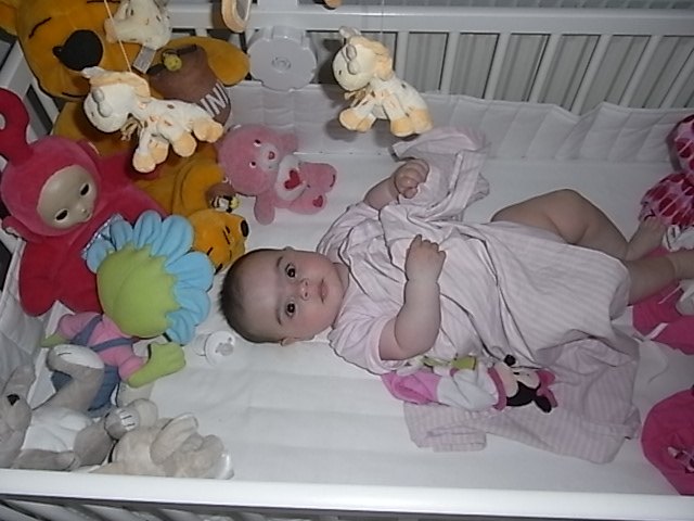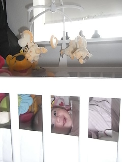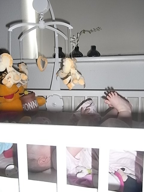 Hun faldt i søvn hos mig, mens jeg ammede hende for lidt siden. Jeg lagde hende ind i tremmesengen, fordi jeg tænkte, det måtte være køligere derinde! Det var så et af kvartererne, det blev til der... hun får sgu snart et gok af en gummihammer