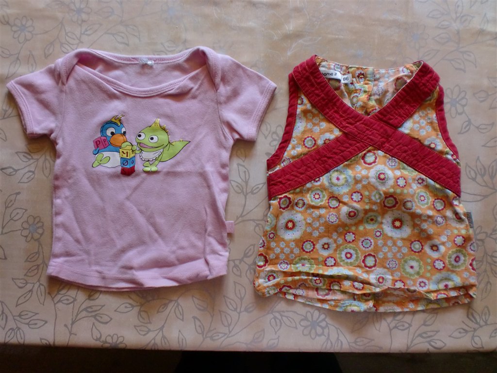 Noget af tøjet hedder "2 år", andet af det str 86 og "90 cm"....Deromkring