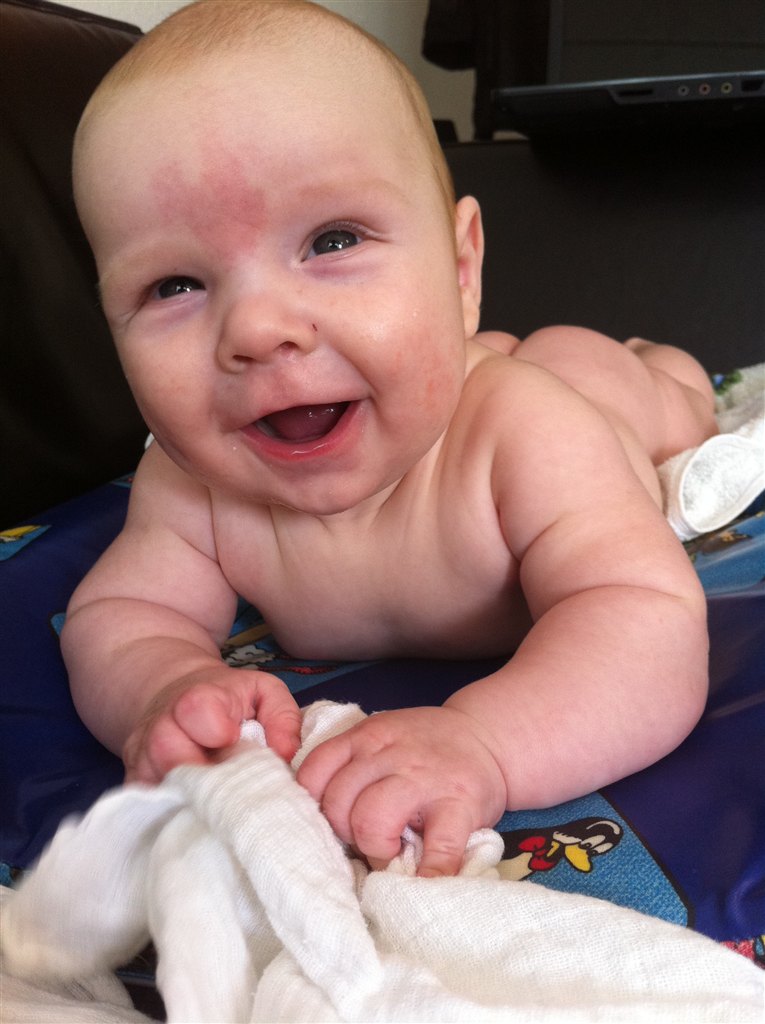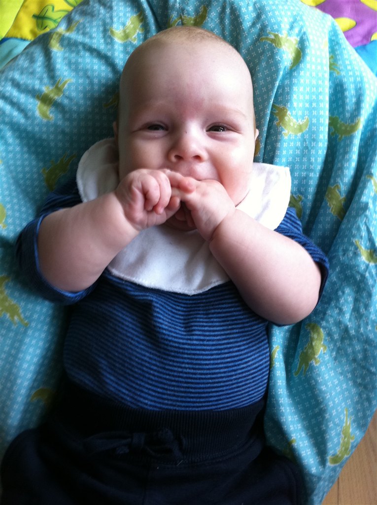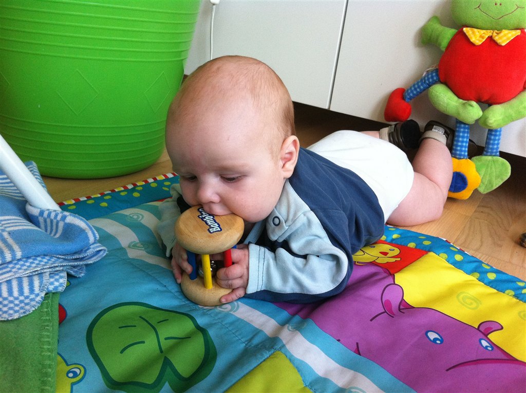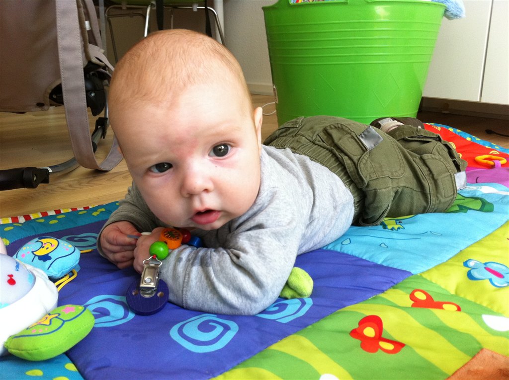 Marius er 4,5 måned, og stor trives, han er en rigtig basse og en super glad dreng ( hvis bare mor er i nærheden)