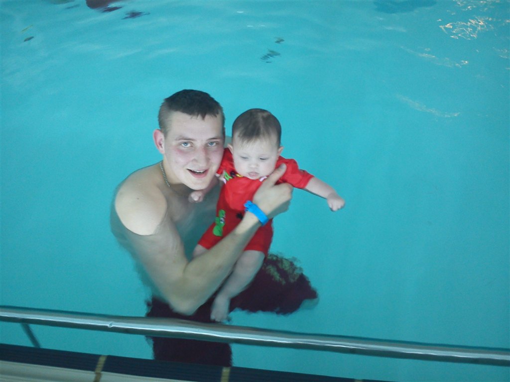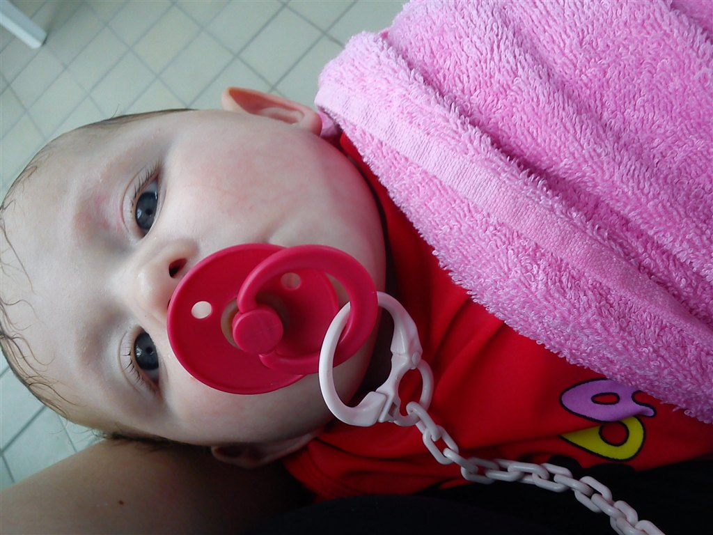 Idag var vi så til baby svømning med Maja for 2. gang, og træneren var jo bare helt vild med hende og hendes barbapapa (staves) badedragt, for den kendte hun jo godt (en lidt ældre dame).. Og så skulle vi prøve og dykke for første gang og HOLD DA OP hun var dygtig, hun sagde ikke et ord smilede bare og baskede rundt og snakkede løs.. Og tro lige far han var stolt da han fik lov og få hende til og dykke og så at hun var lige så stor en vand hund som ham selv..