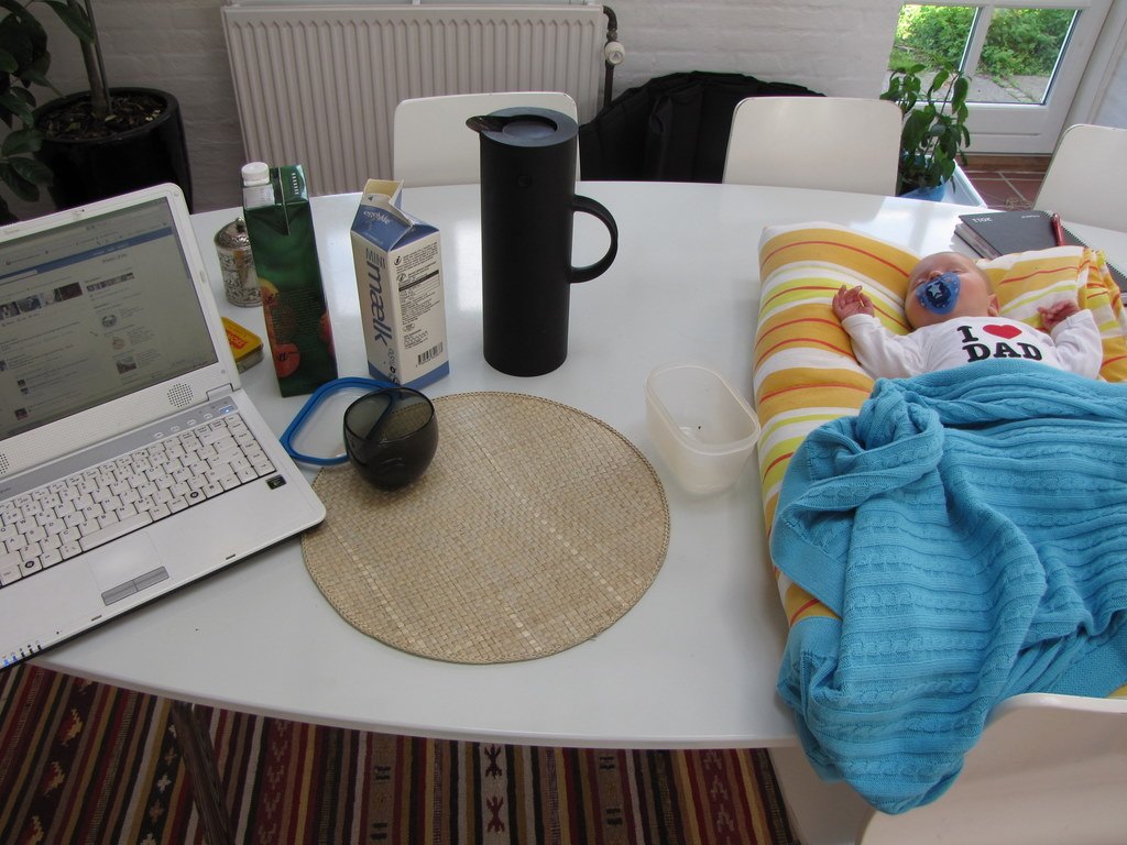 Knus og kram fra mig og Birk - du får lige et par billeder med. Det ene er fra igår hvor vi (efter møje og besvær!) fik ham installereti viklen. Det andet er mit skønne morgenbord her til morgen...