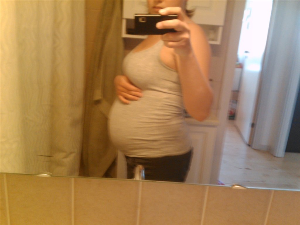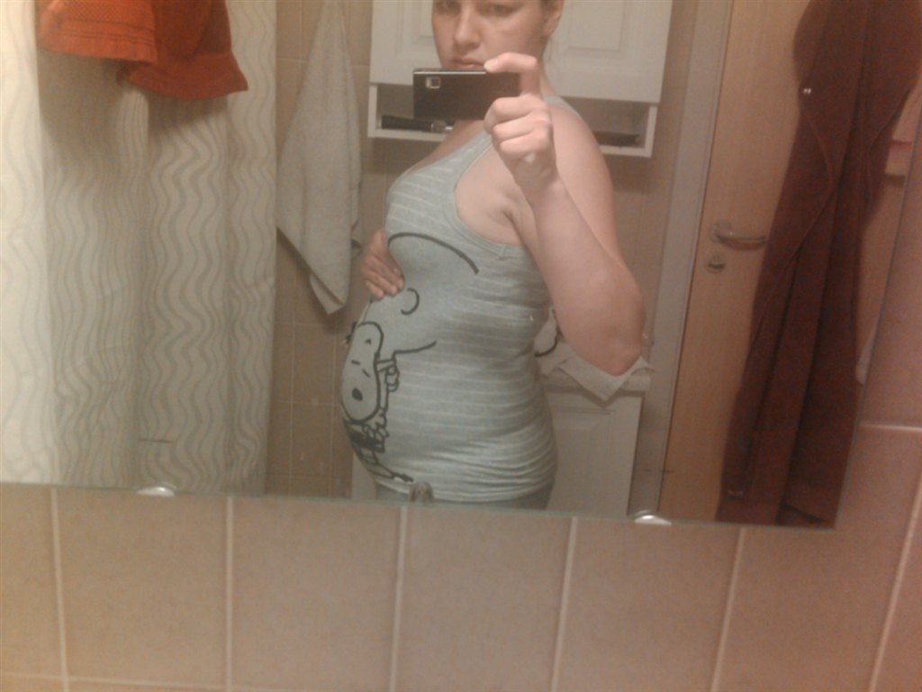 Nej, det kunne jeg ikke og har endda snydt lidt, for på billedet 8+5, da havde jeg lige haft en kæmpe blødning, som de havde mistænkt for at være en tvilling, så jeg var endnu større inden da. Min mave faldt til halv størrelse efter den blødning.